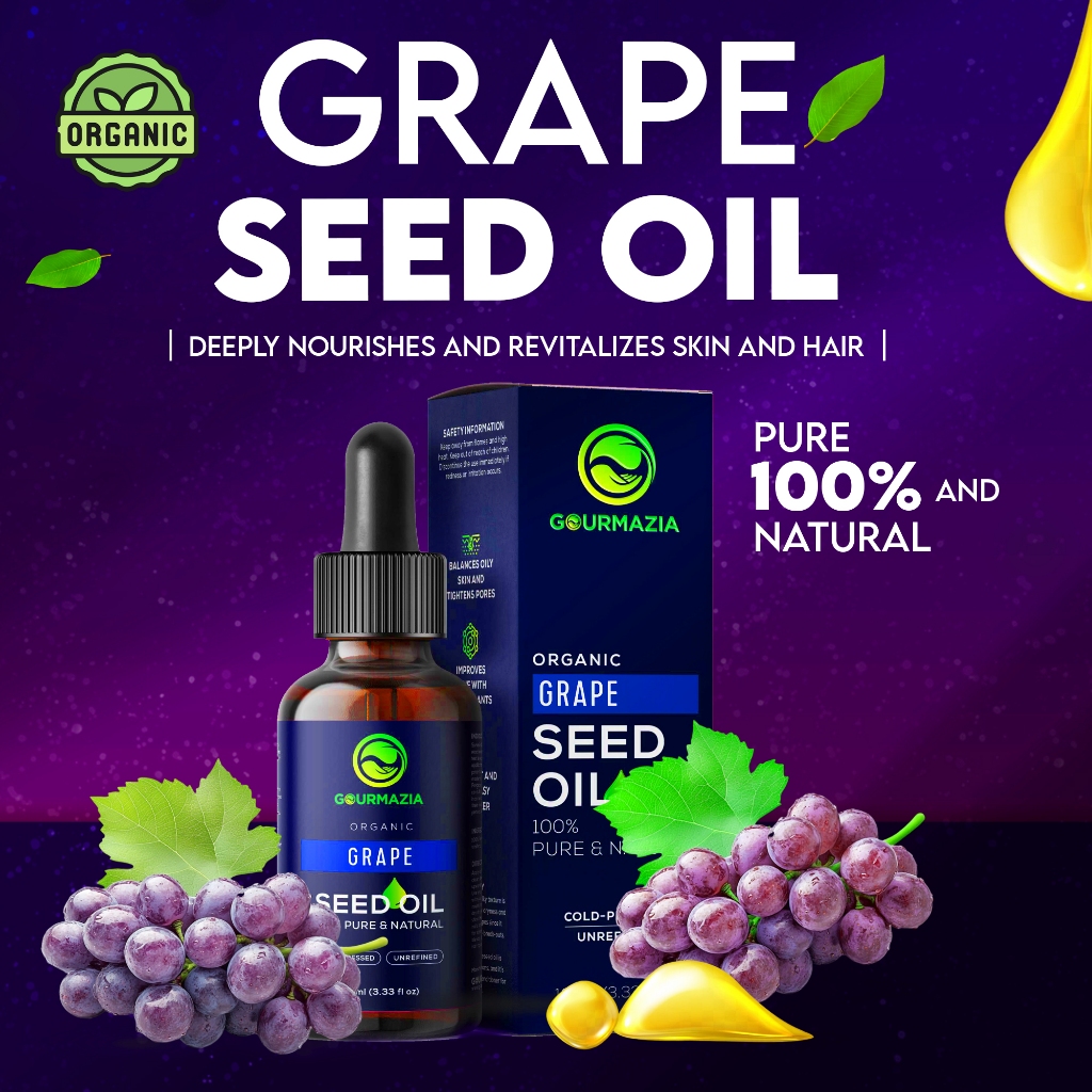 Gourmazia น้ำมันเมล็ดองุ่นออร์แกนิคสกัดเย็น 100ml | บางเบา ซึมเร็ว | Grape Seed Oil 100ml