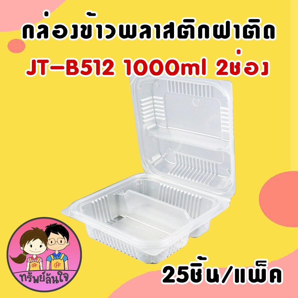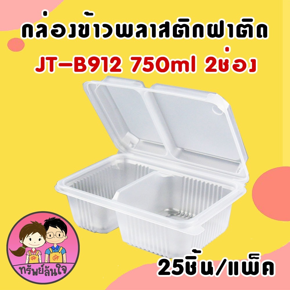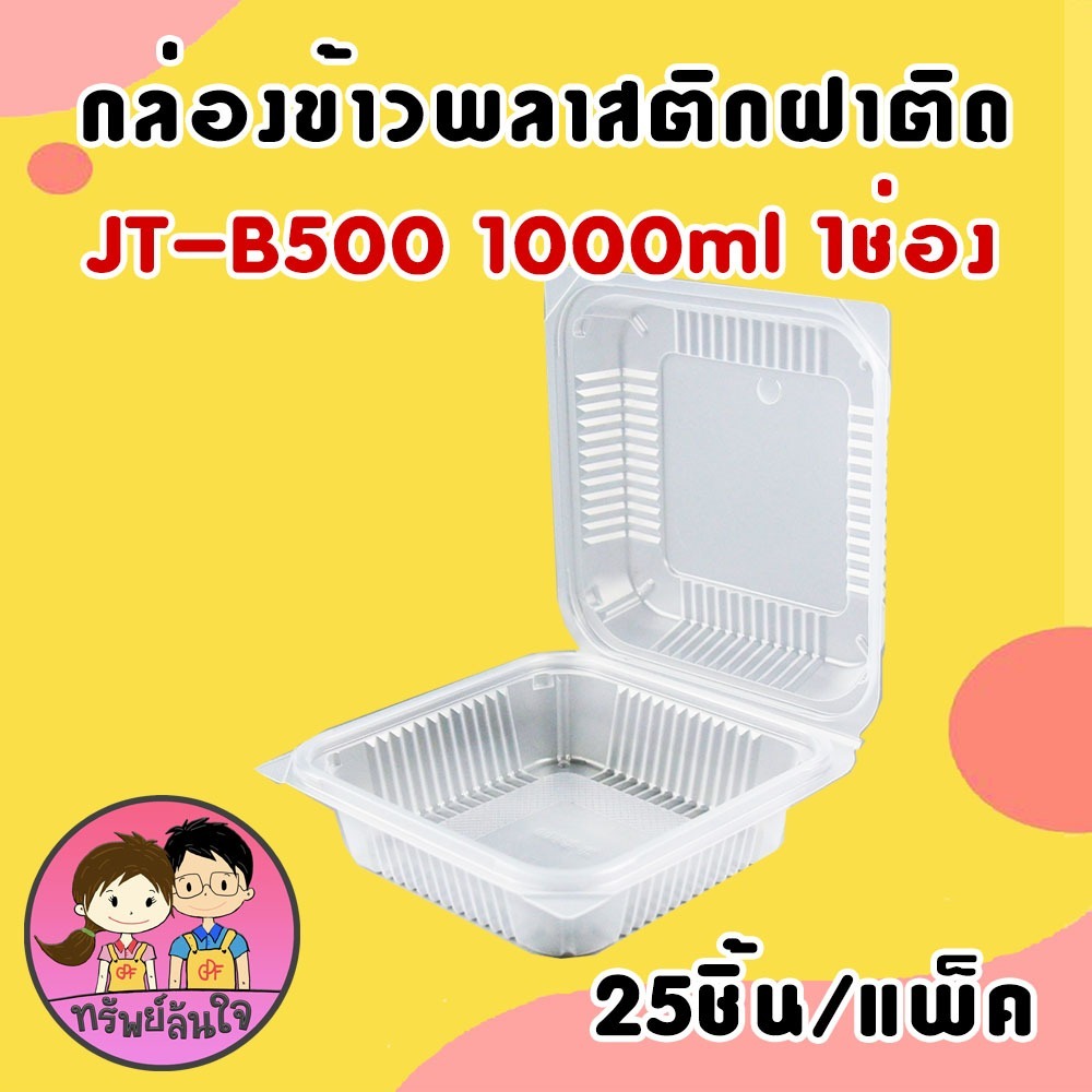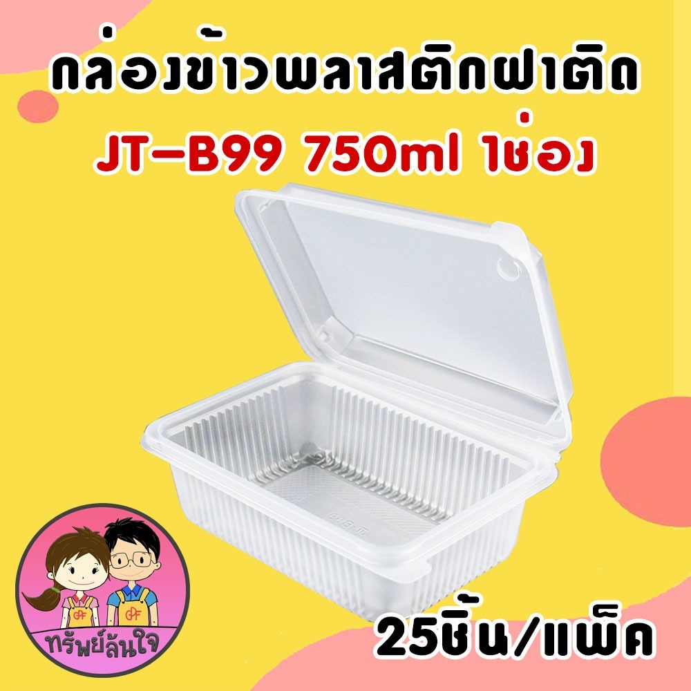 กล่องข้าวพลาสติกฝาติด JT ขนาด 450ml 650ml 750ml 1000ml เข้าไมโครเวฟได้ (25ชิ้น/แพ็ค)
