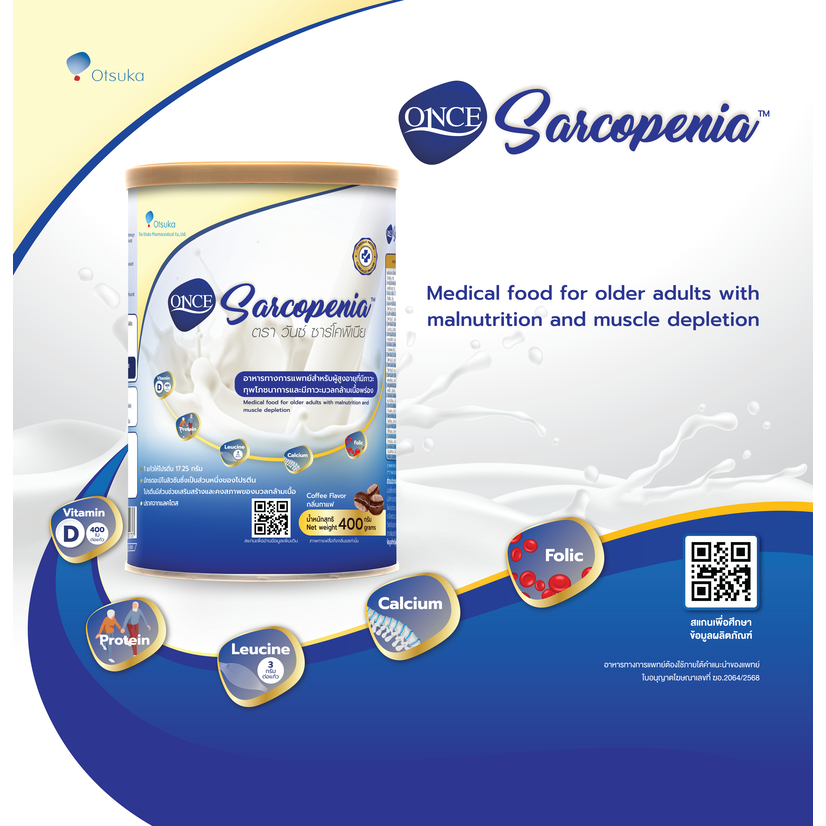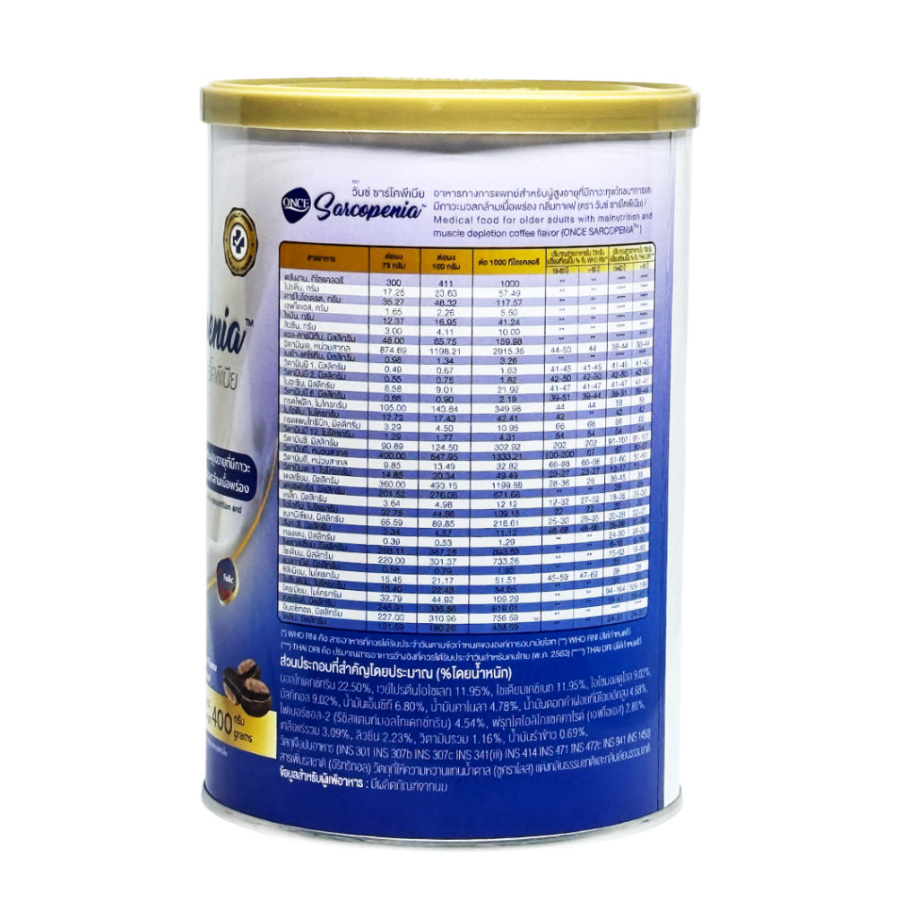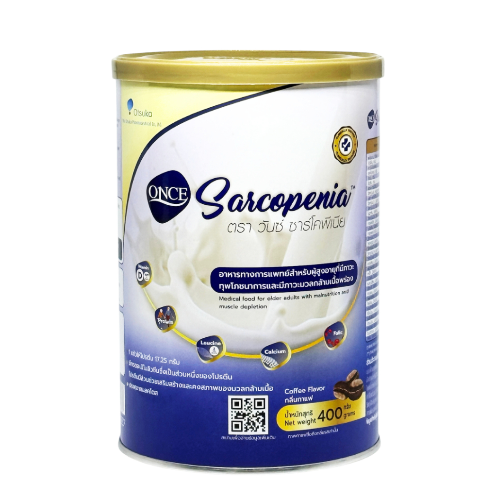 ONCE Sarcopenia 400g วันซ์ ซาร์โคพีเนีย กลิ่นกาแฟ อาหารผู้สูงอายุ ภาวะทุพโภชนาการ ภาวะมวลกล้ามเนื้อพร่อง จำนวน 6 กระป๋อง