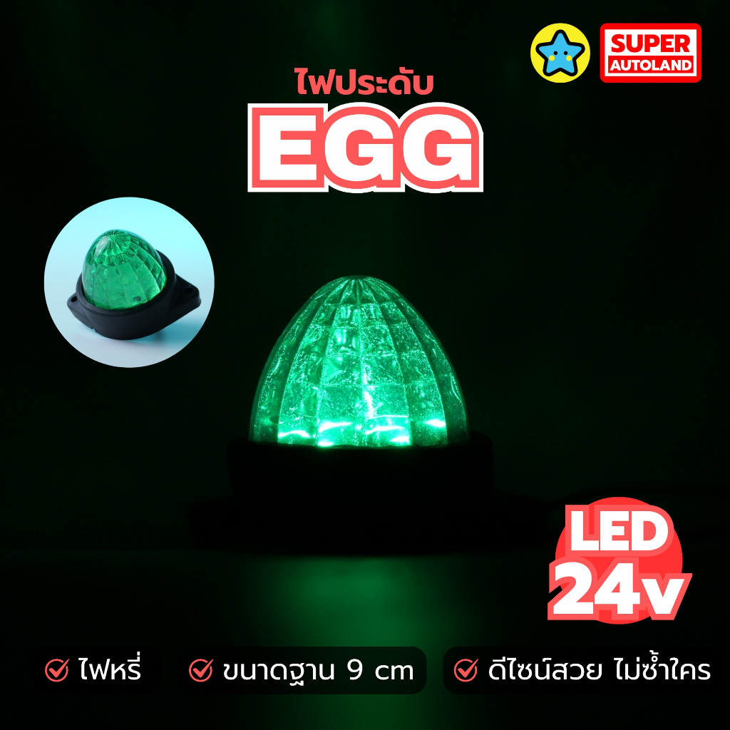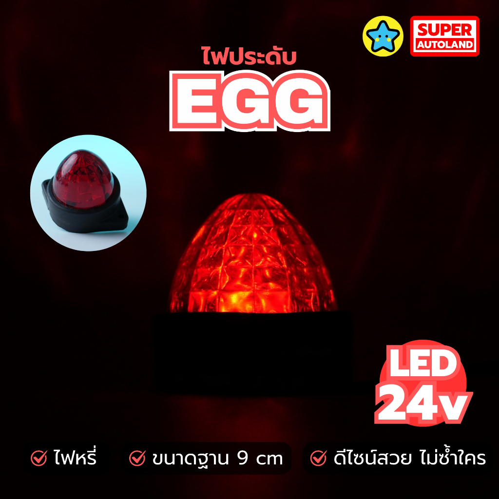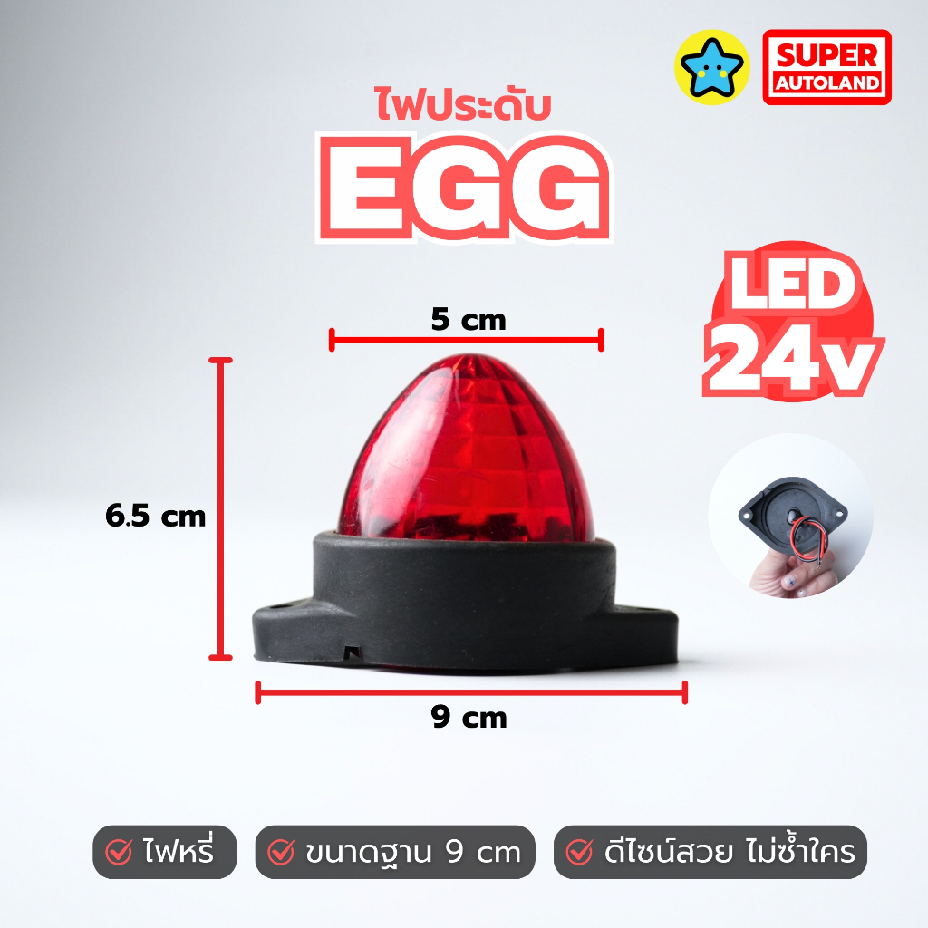 ไฟประดับ EGG LED 12-24V ทรงไข่ ไฟหรี่ ไฟหัวเก๋ง ไฟข้าง รถบรรทุก ขนาดฐาน 9 ซม. (เลือกสี)