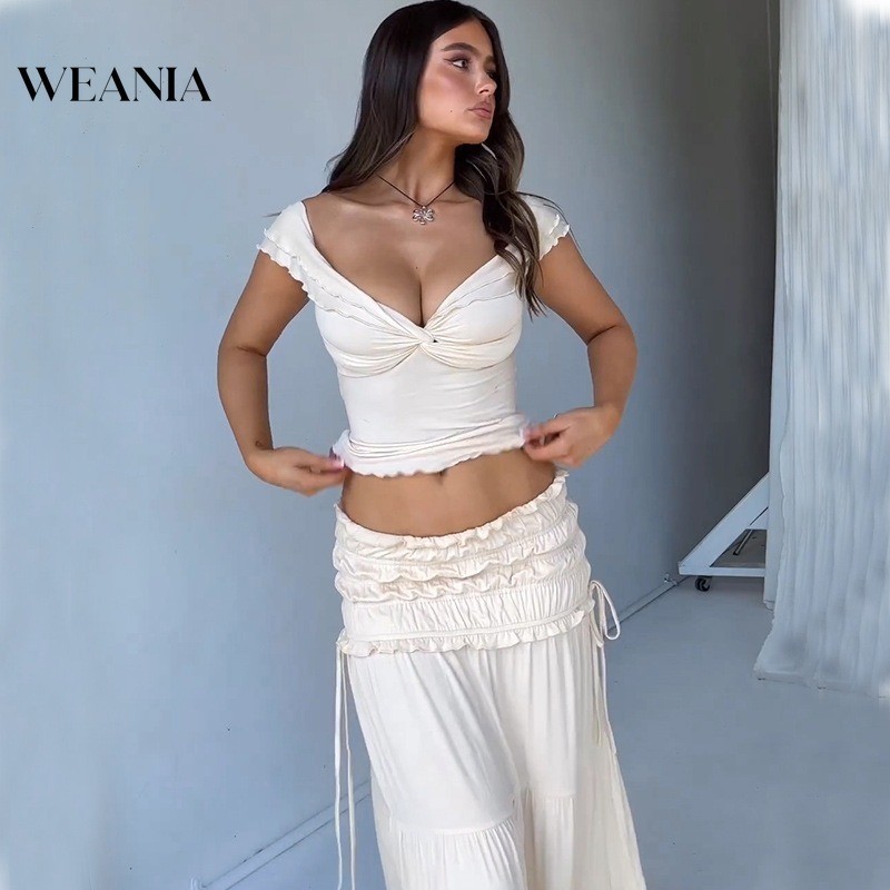 Weania เซ็กซี่สะดือ Low-Cut เสื้อกั๊กสั้นสไตล์ฝรั่งเศสอารมณ์จีบกระโปรงสูทผู้หญิง (แยกจําหน่าย)