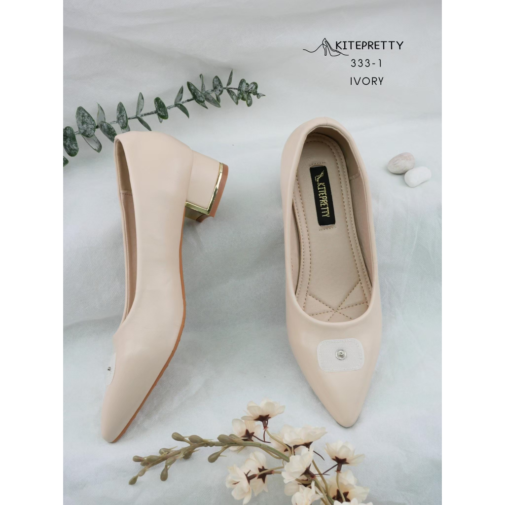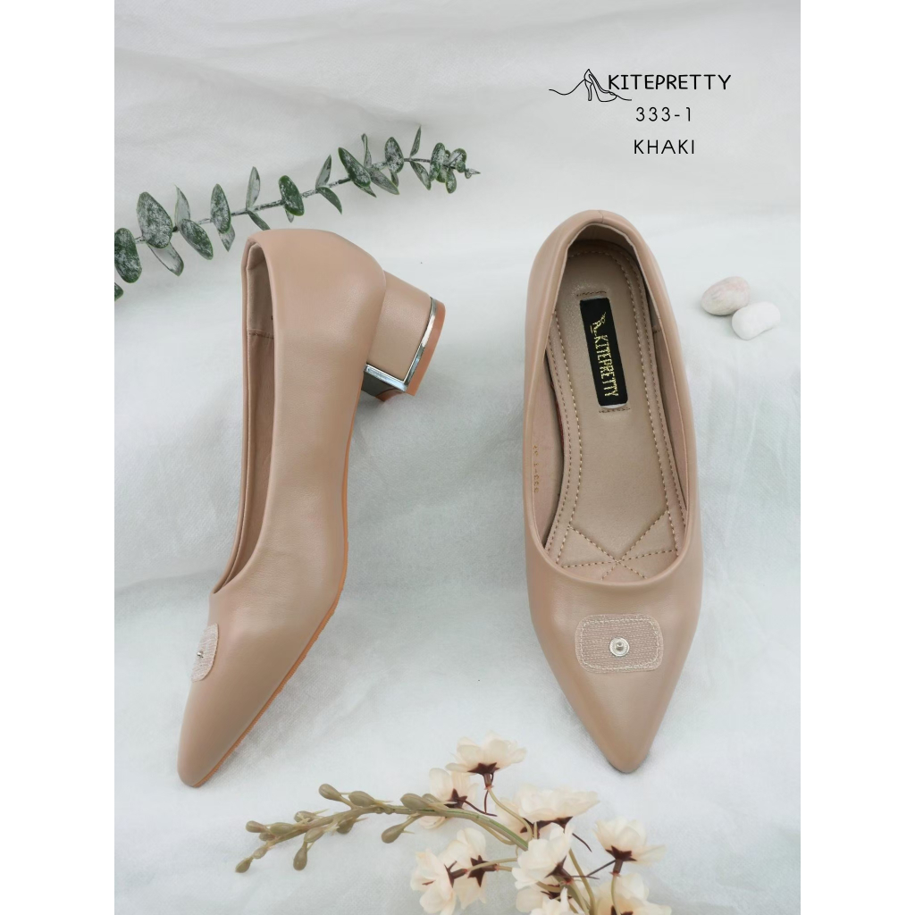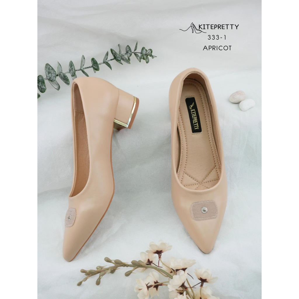 **สินค้าพร้อมส่ง** 333-1 (เฉพาะตัวรองเท้า) รองเท้าคัทชู ส้นก้อน 1.5นิ้ว หน้าประดับอะคริลิก
