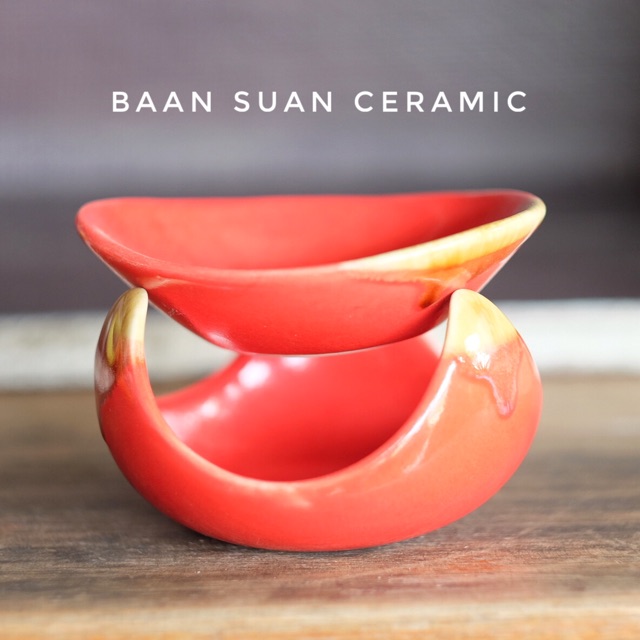 BAANSUAN CERAMIC เตาน้ำมันหอมระเหย วัสดุเซรามิก แยกชิ้นได้ ขนาด 12.5x9 cm. มี7สี
