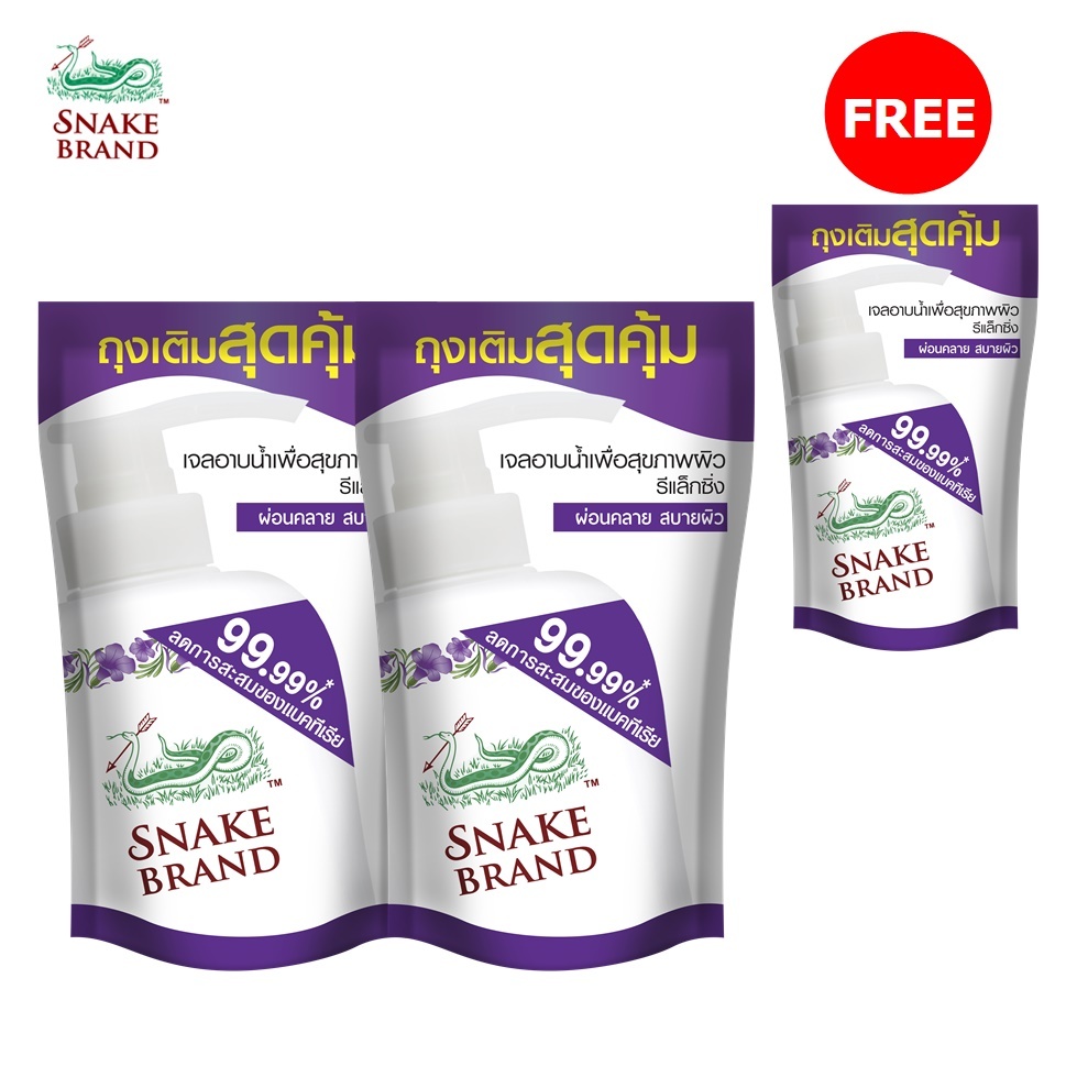 (ซื้อ 2 แถม 1) Snake Brand ตรางู เจลอาบน้ำ สูตรเย็น รีแล็กซิ่ง ถุงเติม ขนาด 400 มล. ครีมอาบน้ำ, Shower Gel Refill