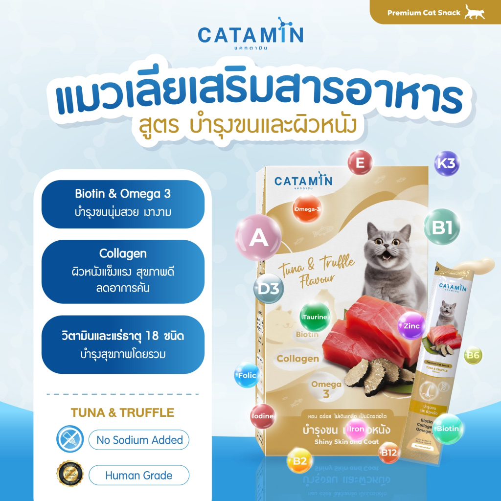 CATAMIN ขนมแมวเลีย สูตร บำรุงขนและผิวหนัง 12 ซอง