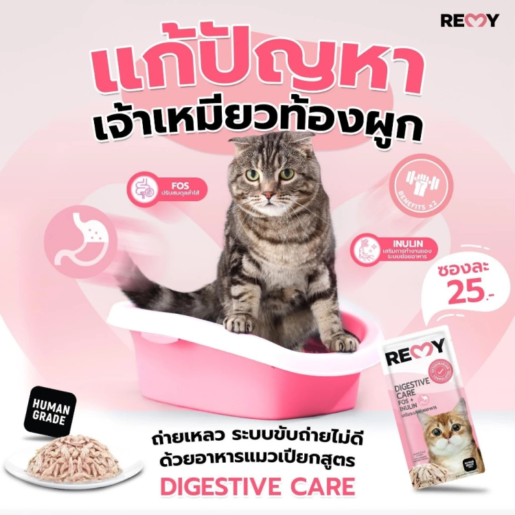[ยกโหล] REMY อาหารเปียกแมว เรมี่ อาหารแมว Human Grade ไม่เติมเกลือ บำรุงขน / ระบบย่อย / เสริมภูมิ 70 กรัม 12 ซอง
