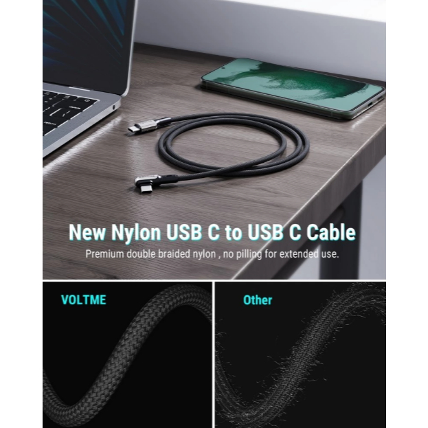 VOLTME POWERLINK STARK USB-C TO USB-C BLACK : 1.2M / 2M : 5A-100W สายชาร์จ(หัวงอ)