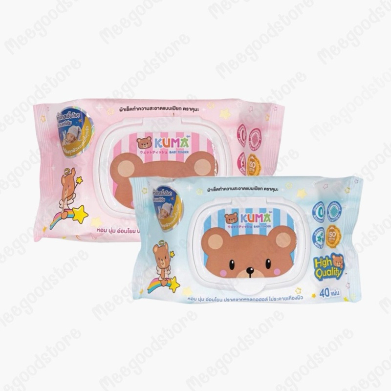 ส่งไวมาก🔥 1 แพ็ค 6 ห่อ ทิชชู่เปียกคุมะ 🧸🌟 KUMA ผ้าเช็ดทำความสะอาดแบบเปียก ปราศจากแอลกอฮอล์ รุ่นฝาปิด 40 แผ่น/ห่อ
