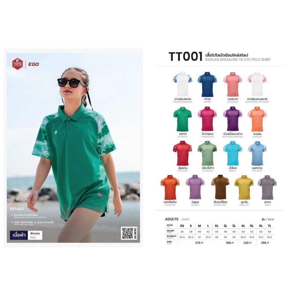 💥ลดโหดสูงสุด 1,000 บาท💥 เสื้อโปโลแต่งแขนลายมัดย้อม EGO SPORT รุ่น TT-001 THAI TONE SET 3 แท้100%