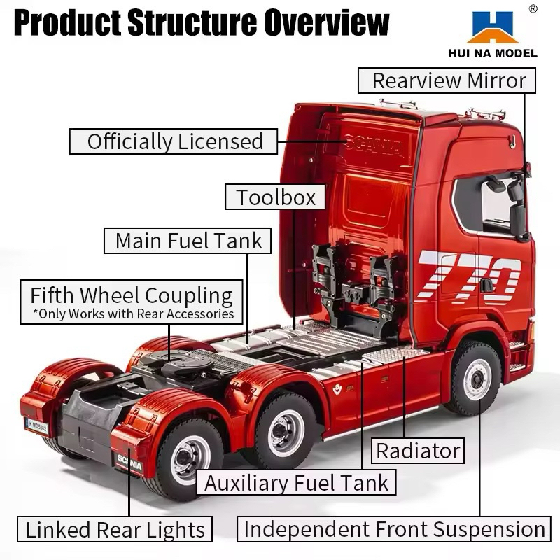 รถบรรทุกหัวลากบังคับวิทยุHuina1501 SCANIA(ส่วนหัว) 770S V8 สเกล1:18 2.4GHz มีเสียงมีไฟแบตเตอรี่ชาร์จอุปกรณ์พร้อมเล่น
