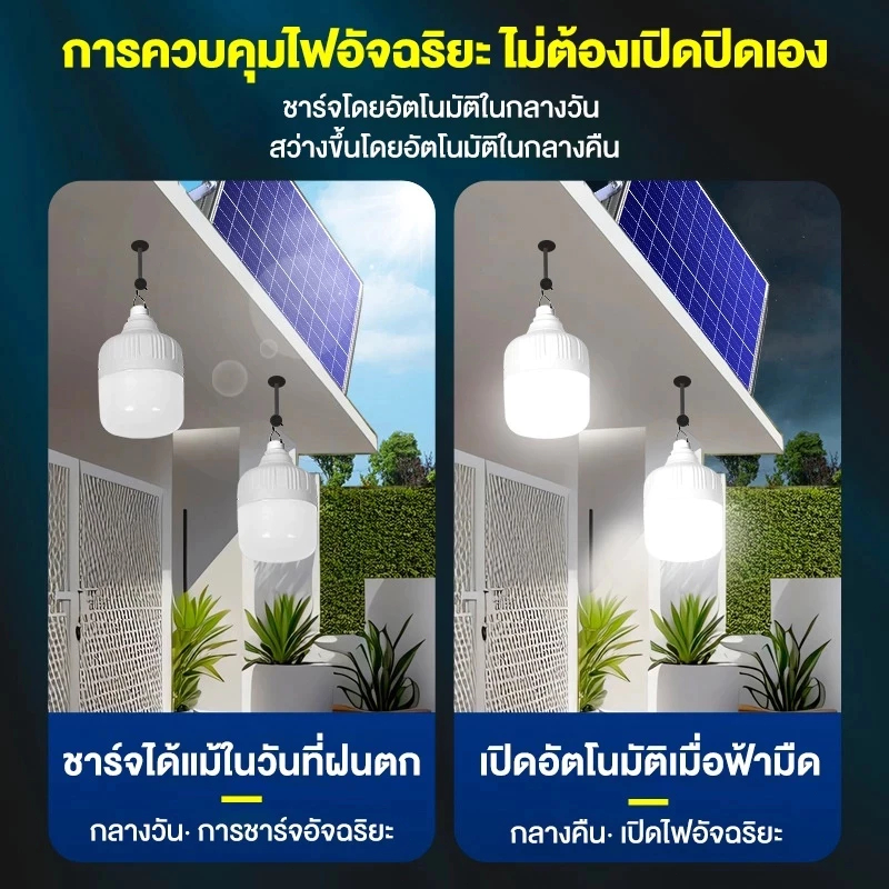 รับประกัน 10 ปี GLO ไฟโซล่าเซลล์ โซล่าเซลล์ 50000W หลอดไฟ Solar Light LED ไลท์แสงสีขาวกันน้ำ 0ค่าไฟฟ้า ชาร์จไฟอัตโนม