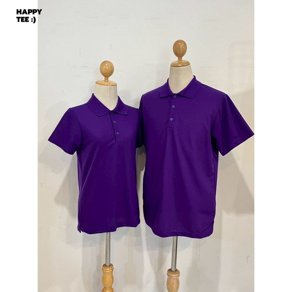 HAPPY TEE เสื้อโปโล "สีม่วงเข้ม" ทรงสวย ผ้านุ่ม ใส่สบาย ไม่ต้องรีด ใส่ได้ทั้งครอบครัว