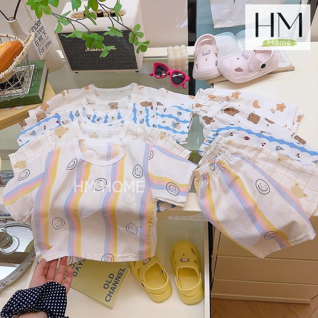 เสื้อผ้าเด็ก ชุดนอนเด็ก แขนสั้นขาสั้น ชุดลำลองเด็กเซ็ท 2 ชิ้น พิมพ์ลายน่ารักๆ