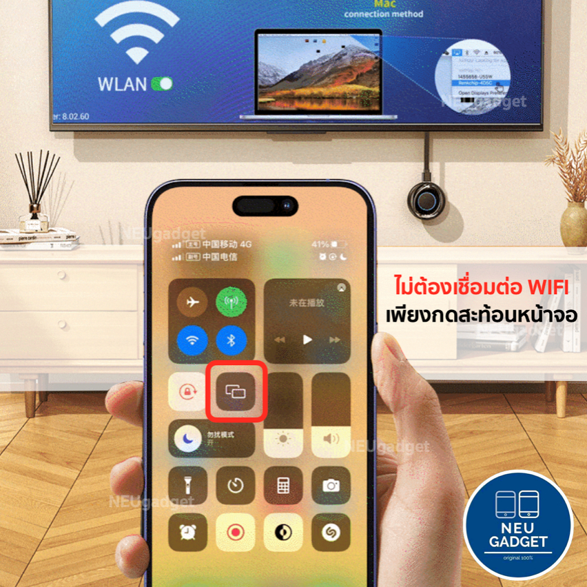 [ใหม่ล่าสุด❗️] อุปกรณ์แชร์หน้าจอไร้สาย 5G 4K WIFI Display HDTV อุปกรณ์เชื่อมต่อมือถือไปทีวี ไม่ต้องเชื่อมต่อ Wifi