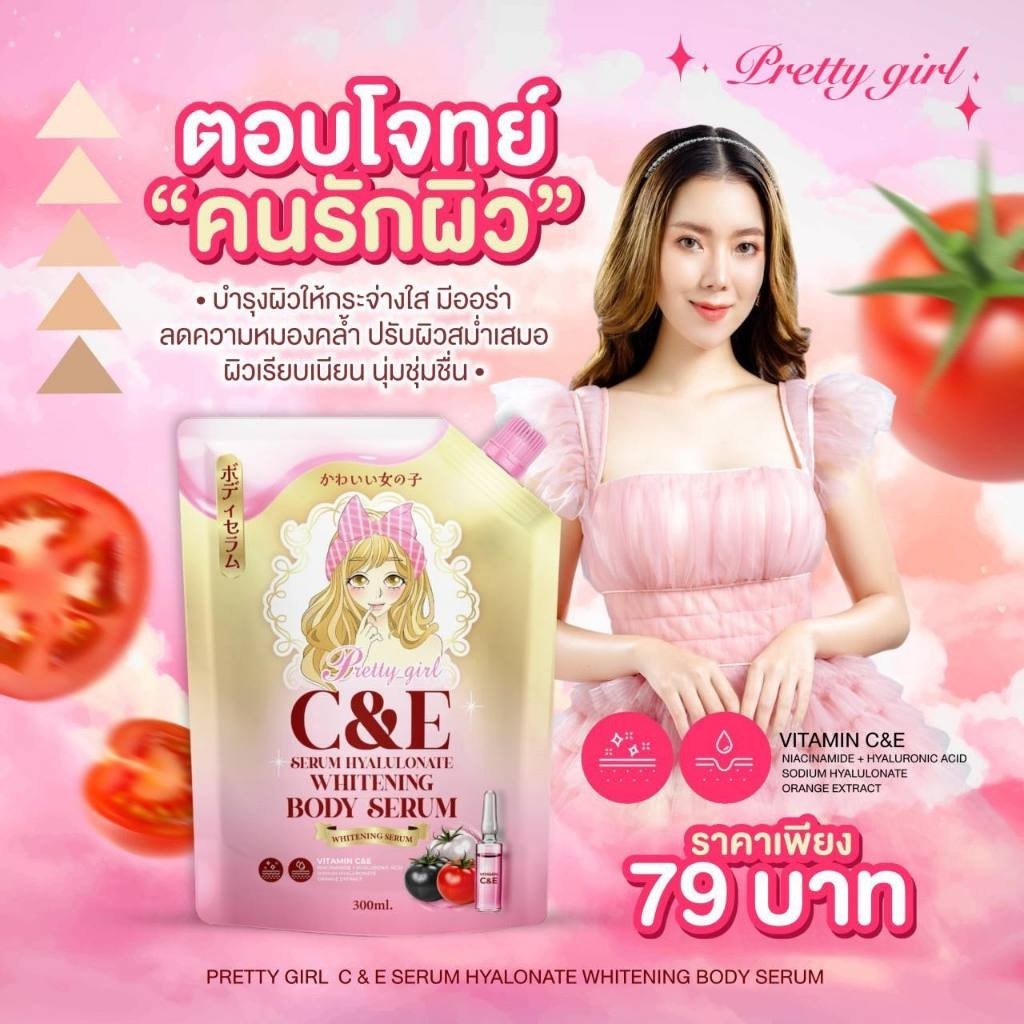 (2ซอง)โลชั่นสูตรใหม่ Pretty Girl C&E Serum พริตตี้เกิล์ล บำรุงผิว ขนาด 300ml