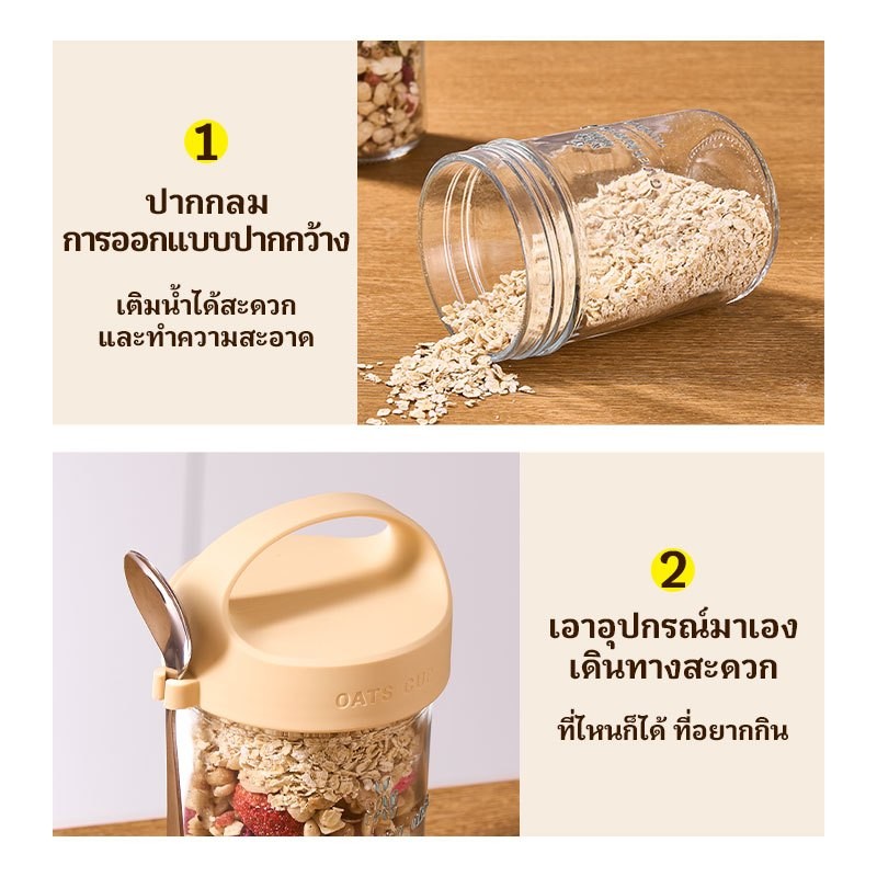 GIANXI แก้วพร้อมฝา แก้วอาหารเช้า Light Eating แก้วน้ำแบบพกพา มีฝาปิดและช้อน ถ้วยข้าวโอ๊ต 430ml แก้วปิดผนึกแบบพกพาถ้วยซีเรียล[โปรสงกรานต์]