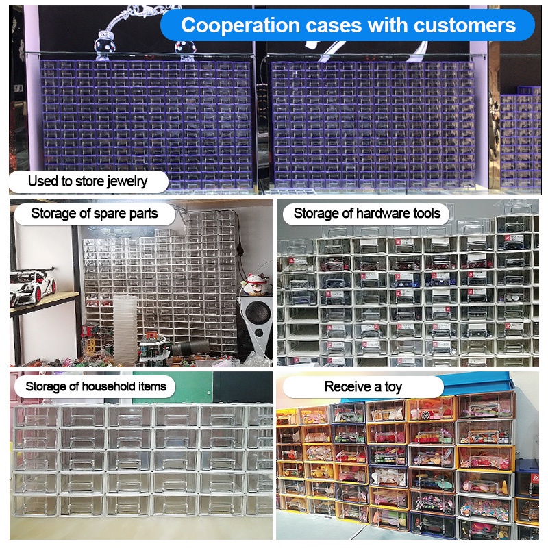 LEADLOONG F0 กล่องอะไหล่ลิ้นชัก 8/16pcs 14x9x4CM กล่องลิ้นชักเดสก์ท็อป วางซ้อนกันได้ สําหรับเก็บอะไหล่ สกรู เครื่องมือ