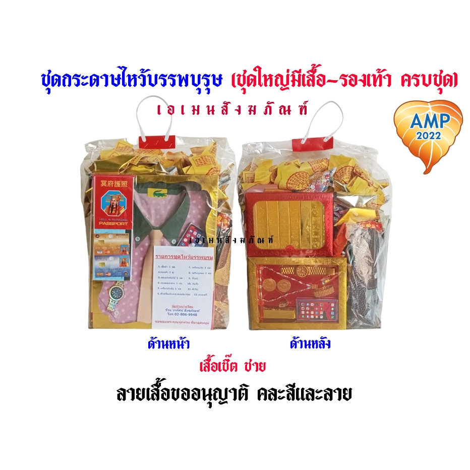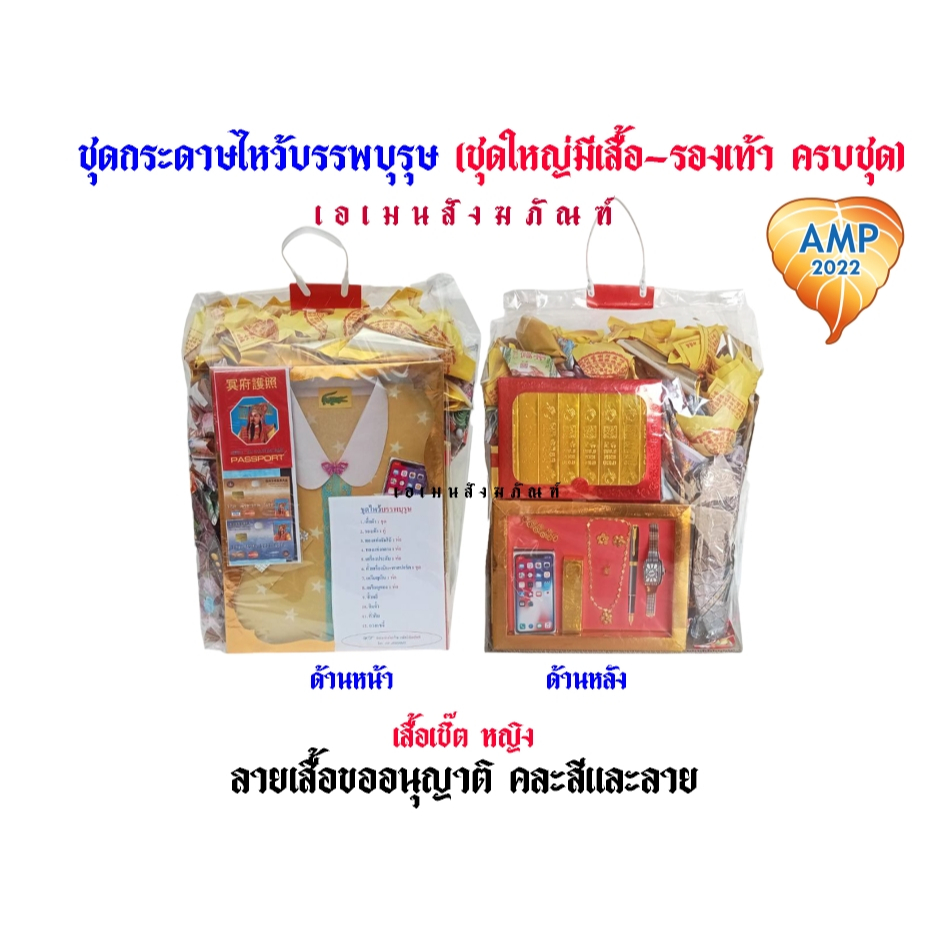 กระดาษชุดไหว้บรรพบุรุษ ชาย-หญิง (ชุดใหญ่มีเสื้อ-รองเท้า -ชุดเพชร ครบชุด) (ราคาต่อ 1 ชุด)