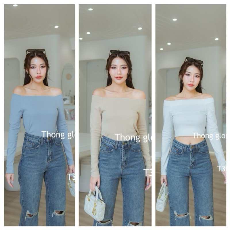 T304 เสื้อแขนยาวปาดไหล่ผ้ายูนิโคล่เนื้อญี่ปุ่น นุ่มหนาเกรดดี