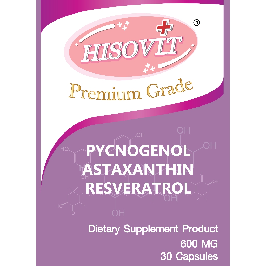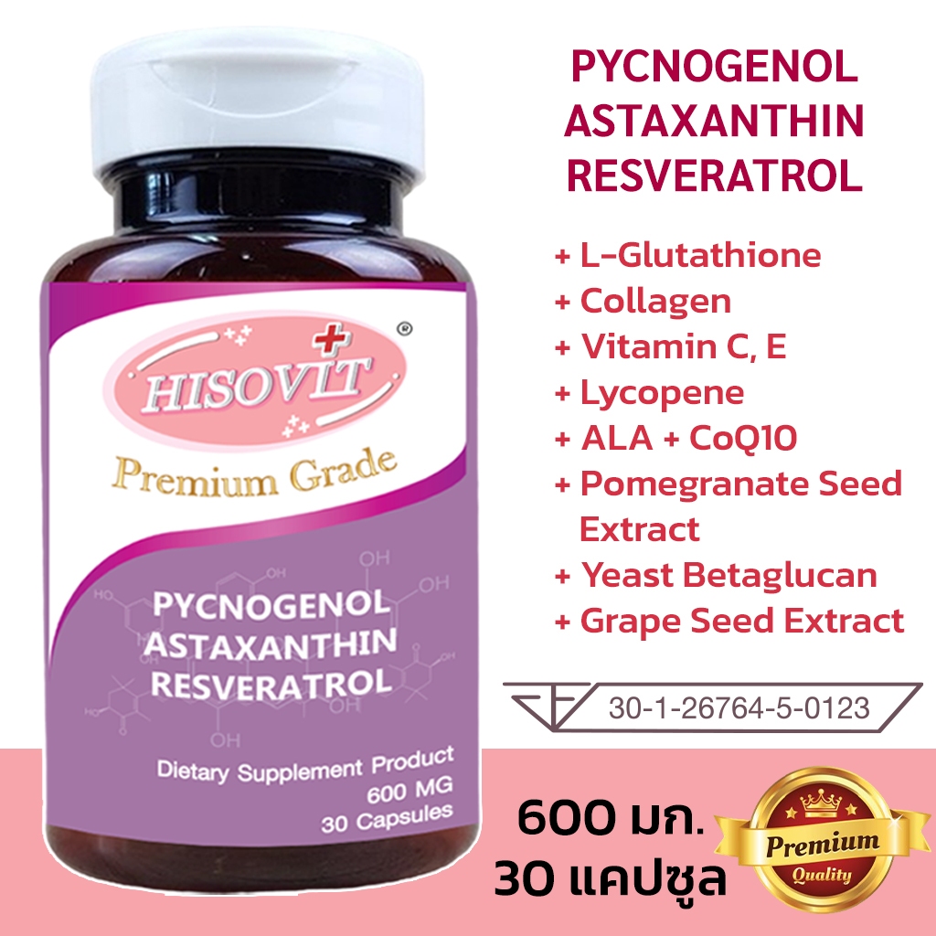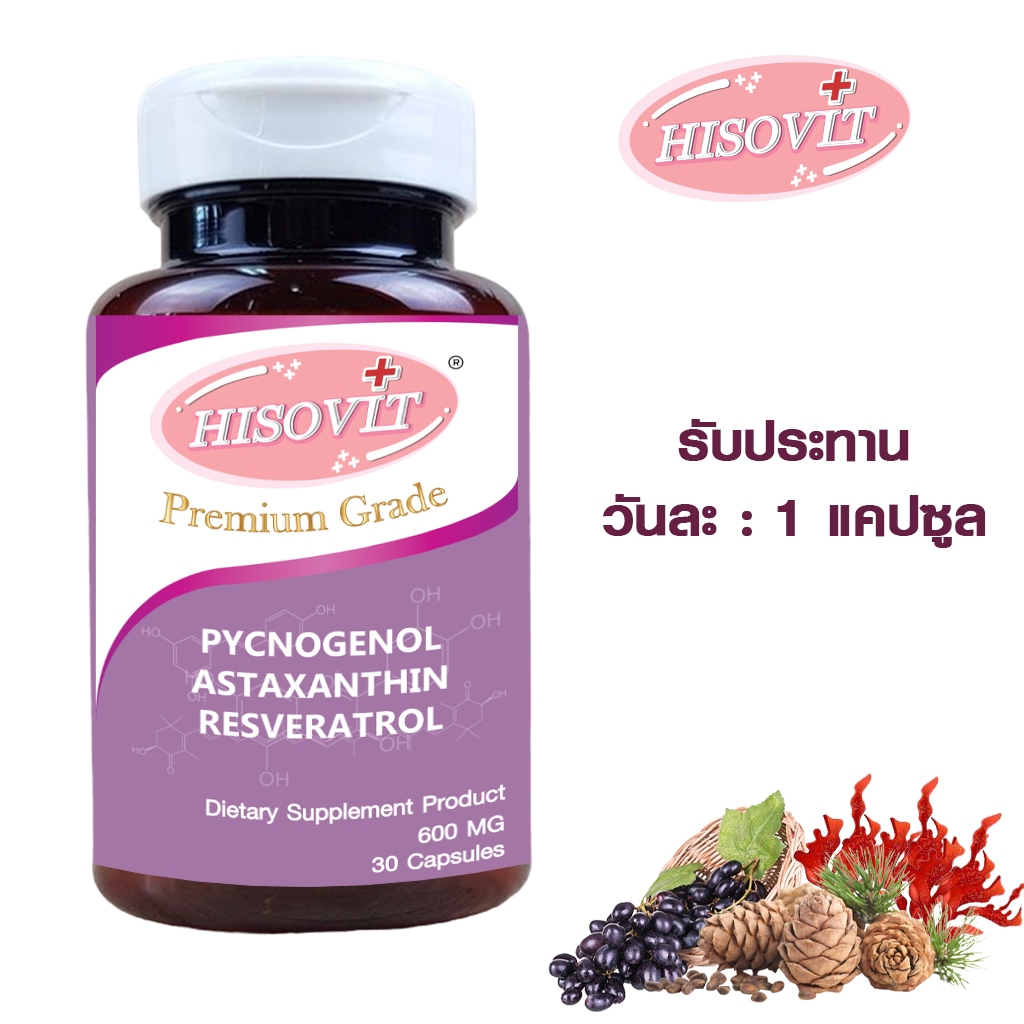 [1แถม1] HISOVIT สารสกัดจากเปลือกสนฝรั่งเศส,แอสต้าแซนธิน,เรสเวอราทรอล 30 เม็ด
