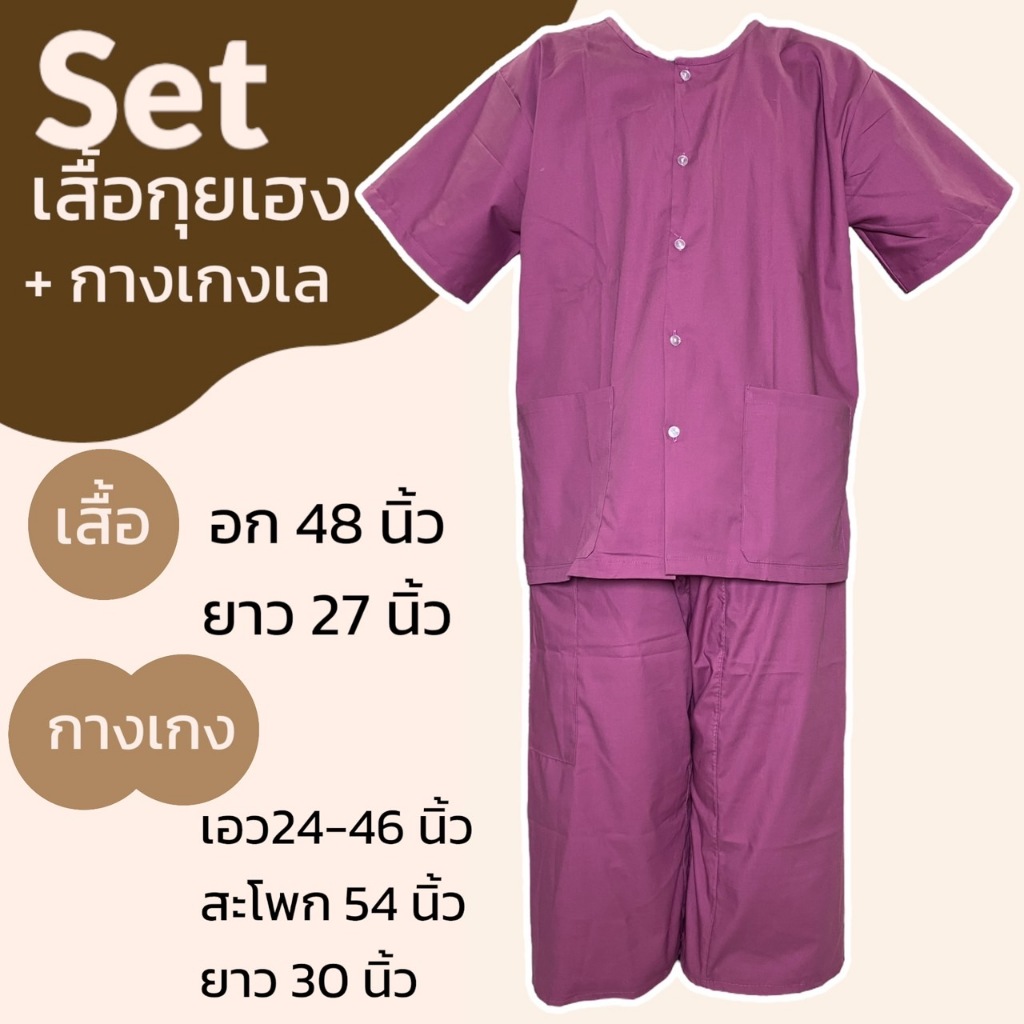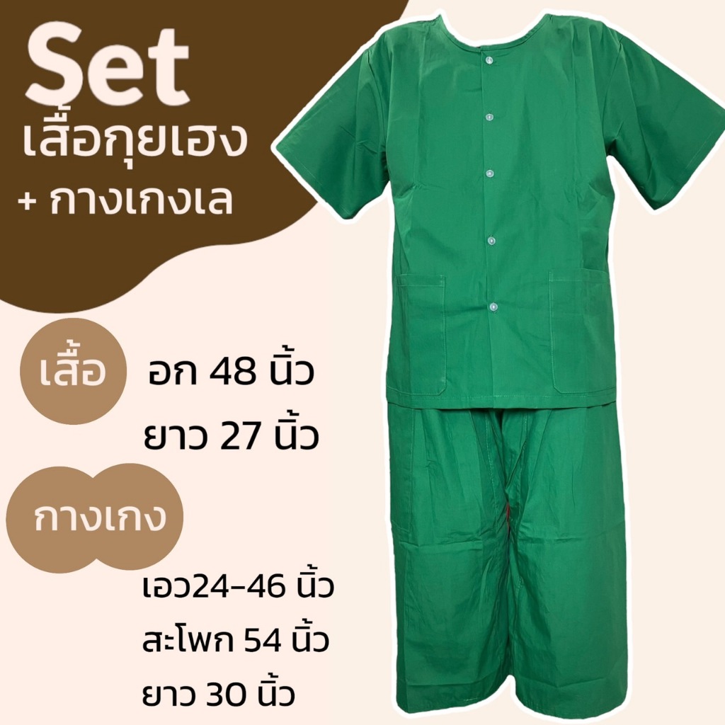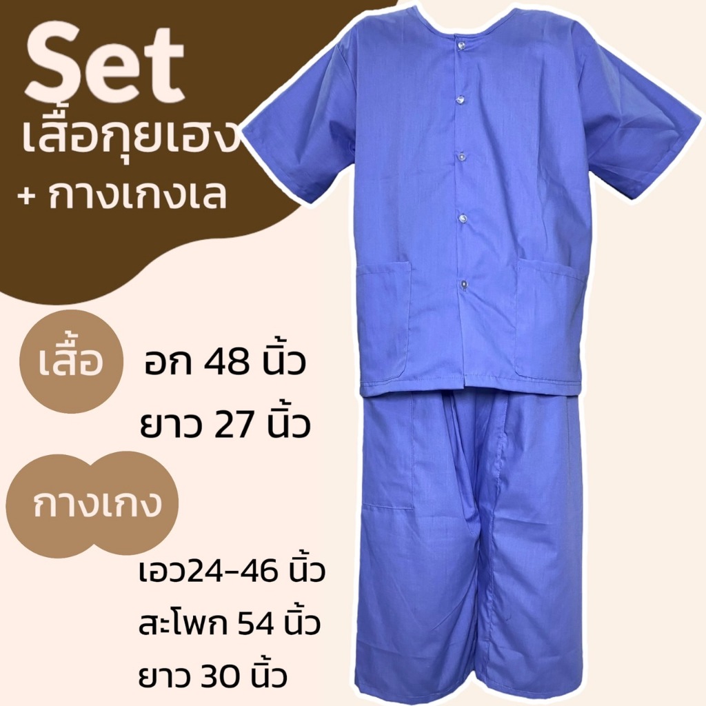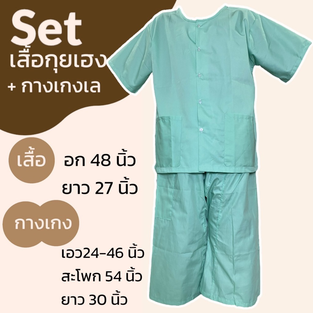 ชุดนวด ชุดสปา กางเกงเลแบบยาวยืด กางเกงเล เสื้อกุยเฮง ผ้าโทเร (Y04)