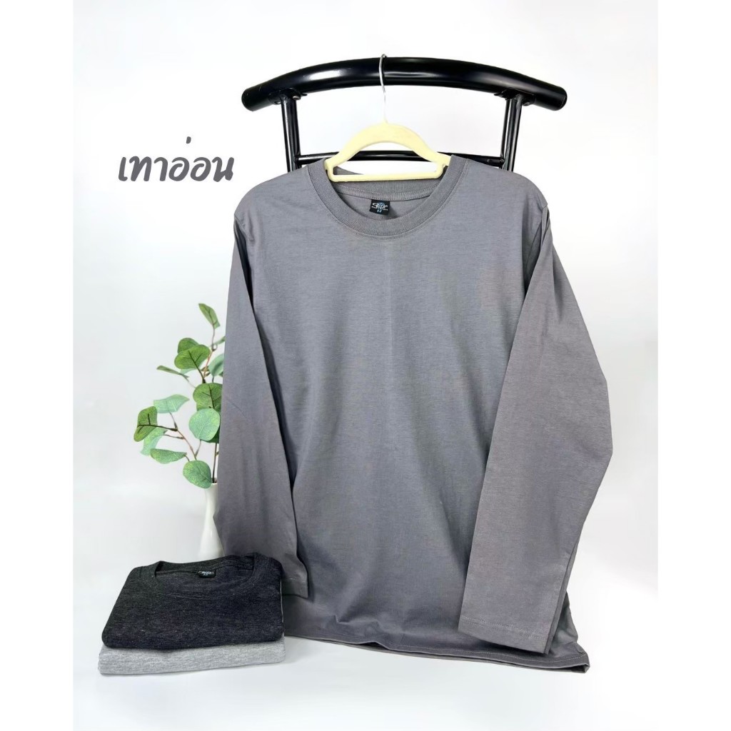 เสื้อยืด แขนยาว (ออกใบกำกับภาษีได้) สีดำท๊อป สีเทาอ่อน สีเทาท๊อป คอกลม (พร้อมส่ง สินค้าผลิตในไทย)