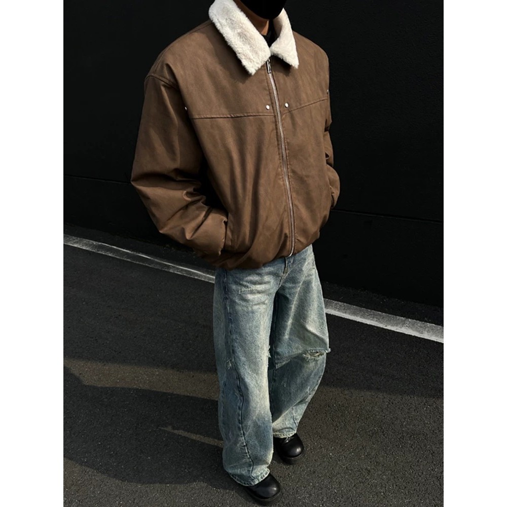 เสื้อผ้าฝ้ายผู้ชายฤดูหนาวสไตล์ญี่ปุ่น Retro Lambswool ปกหนังผ้าฝ้ายเสื้อแจ็คเก็ตอบอุ่น