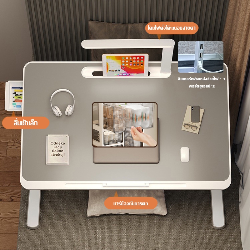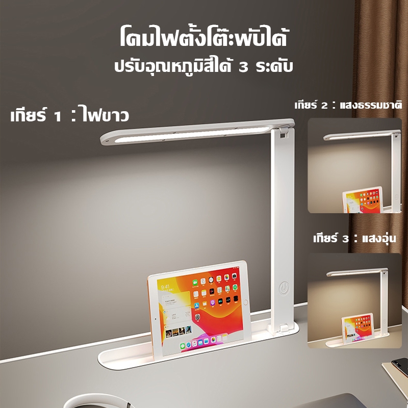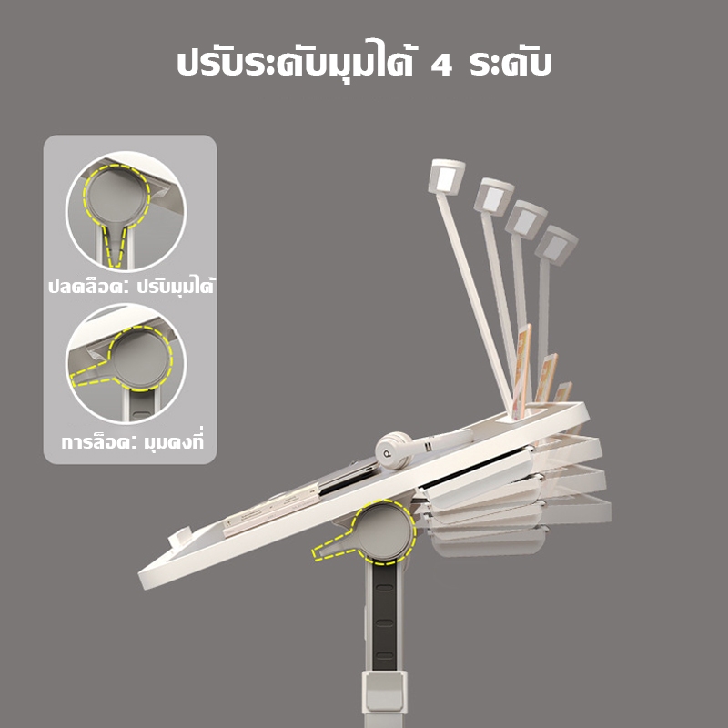 JAERSENT โต๊ะพับ ปรับความสูงได้ การปรับเอียง พร้อมโคมไฟตั้งโต๊ะพับได้ ใช้ได้ทั้งอ่านหนังสือและทำงาน ขนาด 70*45ซม