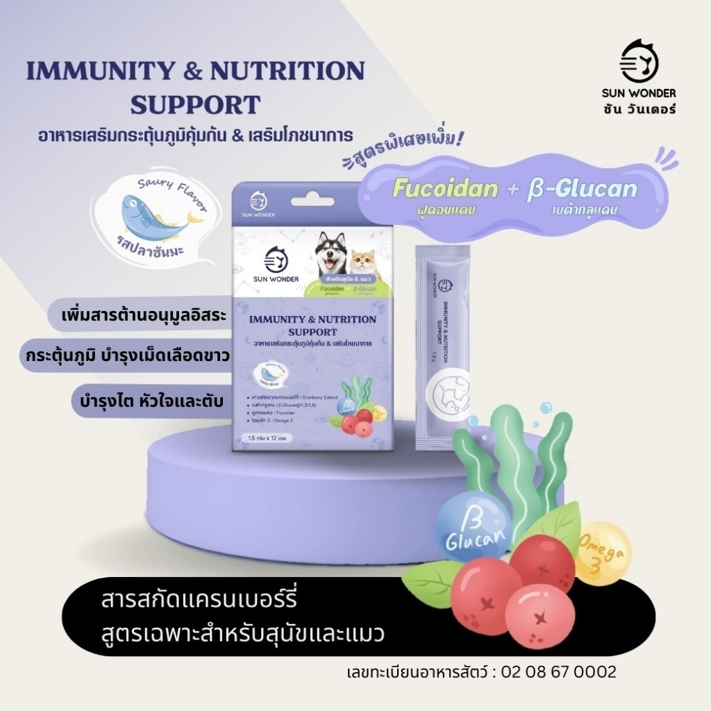 (1ซอง) Sun Wonder อาหารเสริมสัตว์เลี้ยง เสริมภูมิคุ้มกัน บำรุงสุขภาพ ฟื้นฟูร่างกาย