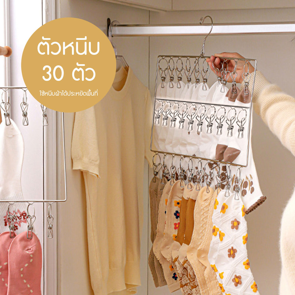 ที่หนีบผ้าสแตนเลส ไม้หนีบผ้าสแตนเลส 30 ตัว แข็งแรง ทนทาน ช่วยประหยัดพื้นที่ตากผ้า