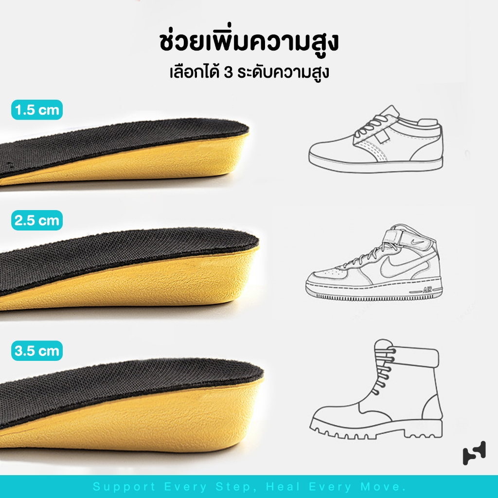 แผ่นรองเท้า Insole แผ่นเสริมส้นรองเท้า HEAL STEPS แท้100% เพิ่มส่วนสูง 1.5/2.5/3.5cm ซัพพอร์ตเท้า
