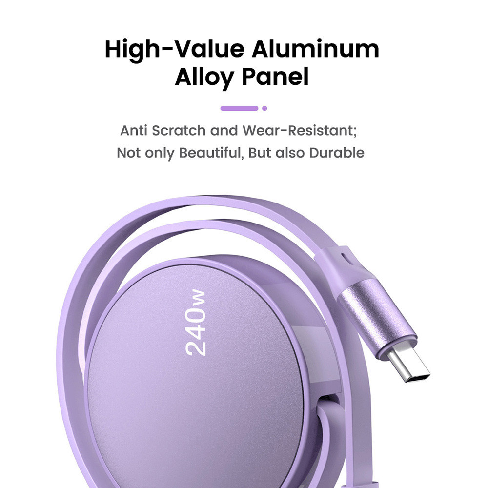 Twitch 1M PD240W สาย USB C แบบพับเก็บได้ Type-C ถึง Type C สายชาร์จเร็วสําหรับแล็ปท็อปโทรศัพท์มือถือแท็บเล็ต