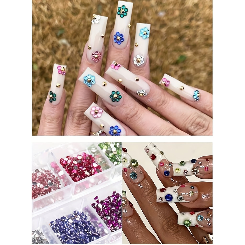 12 Grid Shimmering Crystal Nail Art Rhinestones - พลอยแบบแบนสําหรับตกแต่งอเนกประสงค์ - Adorns Nails รองเท้าแต่งหน้ากระเป๋า