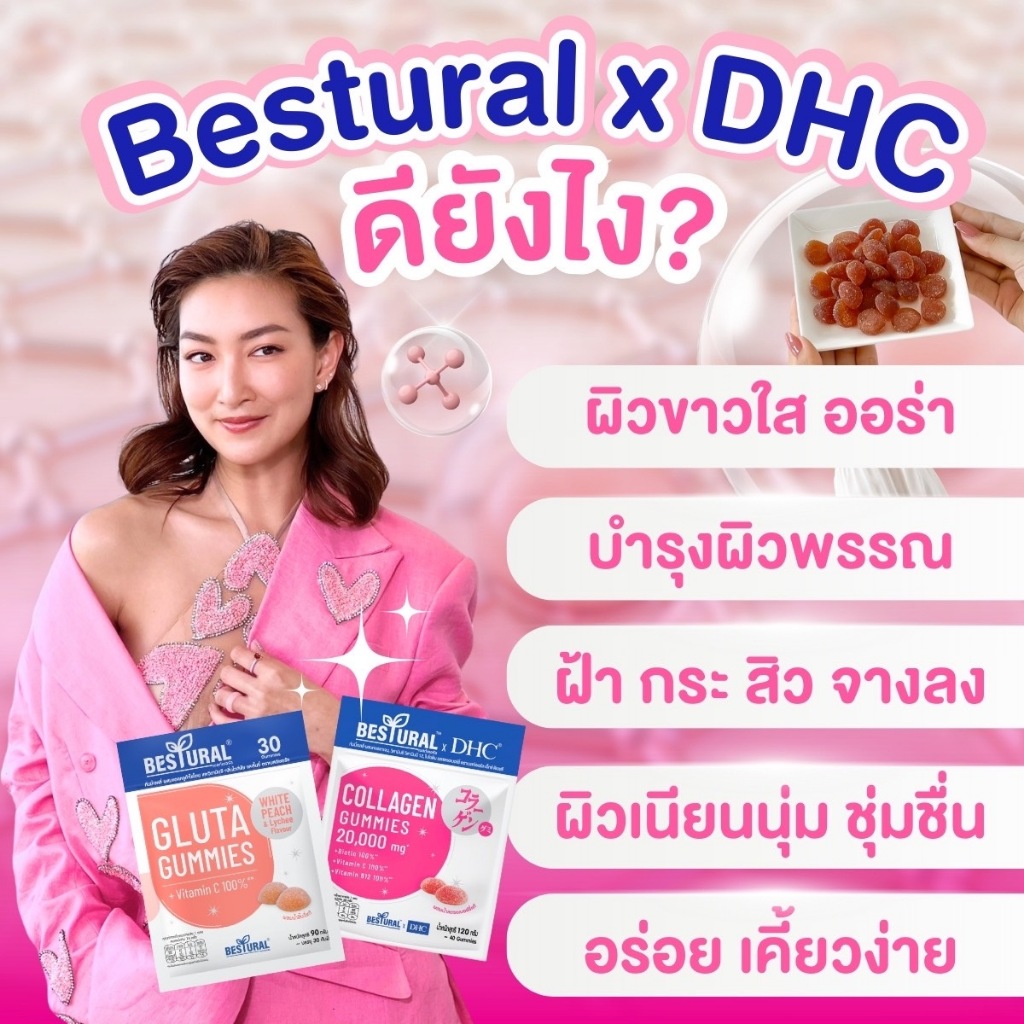 [ 8 แถม 2 ] Bestural x DHC Collagen & Gluta gummies คอลลาเจน กลูต้า กัมมี่ แบบเคี้ยว ผิวขาว ใส ออร่า