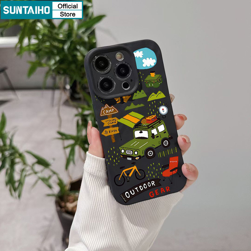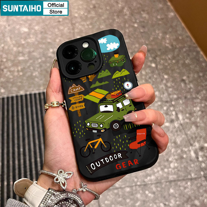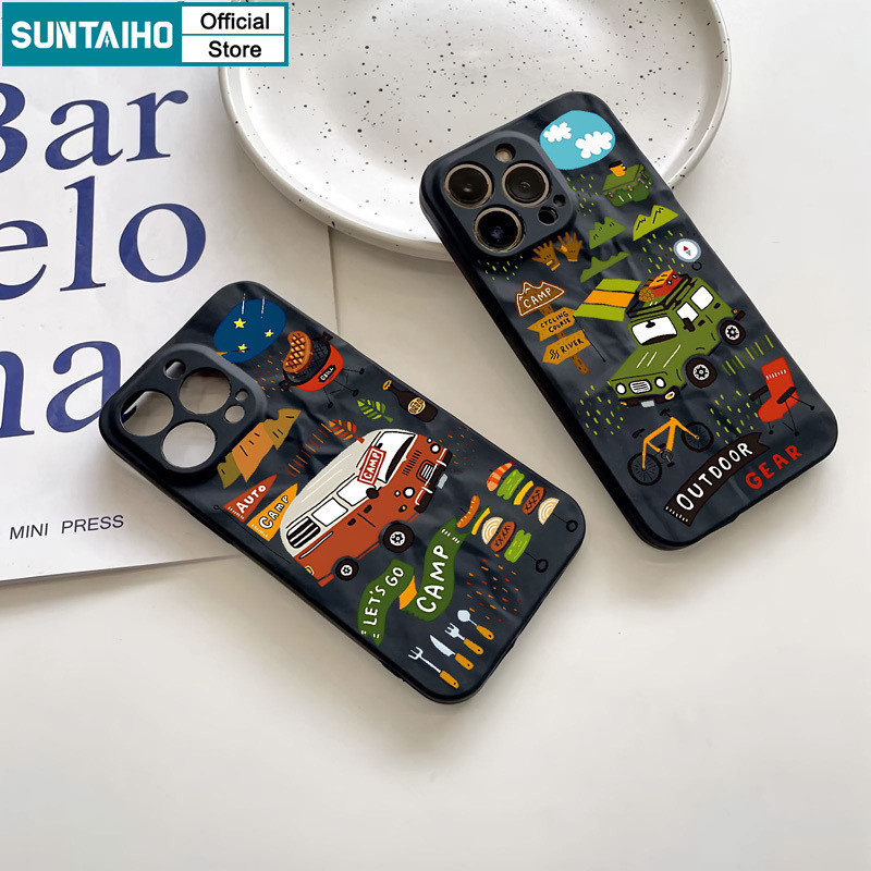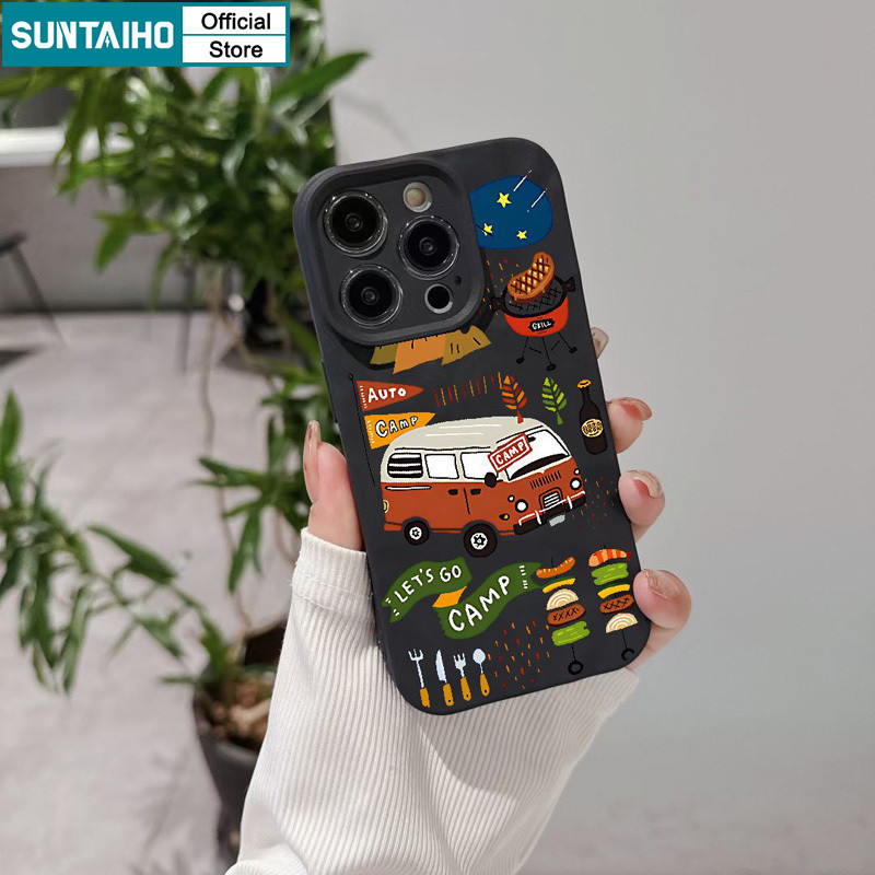 Suntaiho เคสไอโฟน ตลกความงามปลอก Camping รูปแบบรถเคสโทรศัพท์สําหรับ Iphone 15 14 12 13 11 Pro Max IP 7 8 Plus Iphon X Xs XR Xs Max ซิลิโคนนุ่มพรีเมี่ยมกันกระแทกปกหลัง