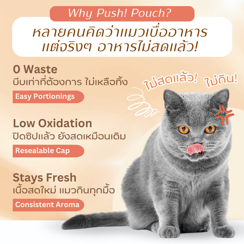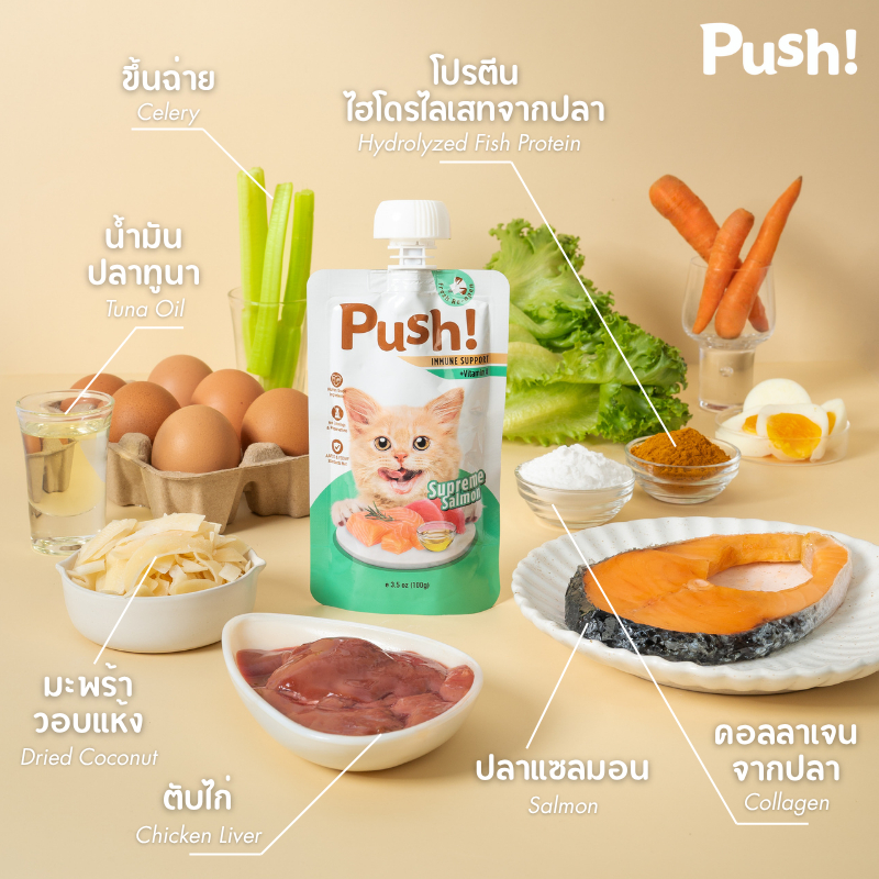 Push! อาหารแมว ซองบีบ [6/12/24 ซอง] 🟢 แซลมอน Complete Balance 100g เนื้อมูสนุ่ม ไม่เติมเกลือ