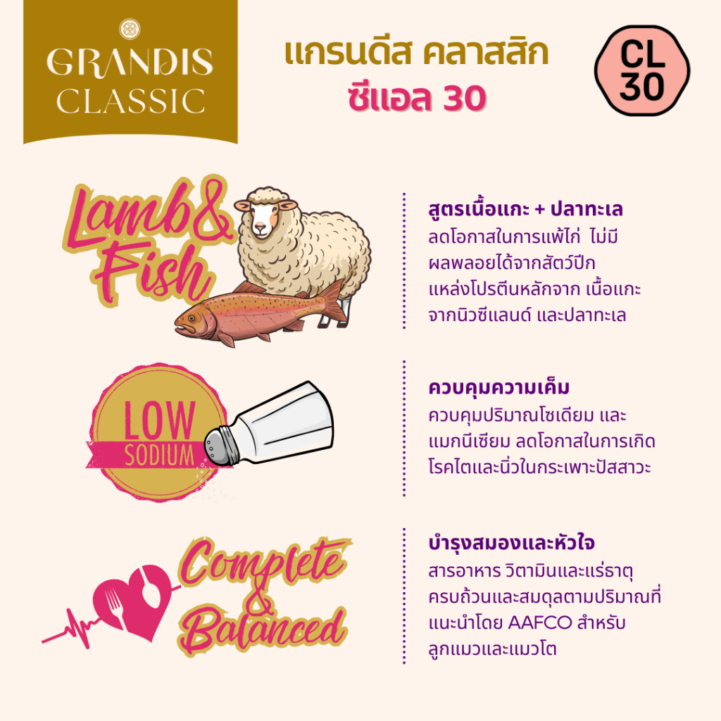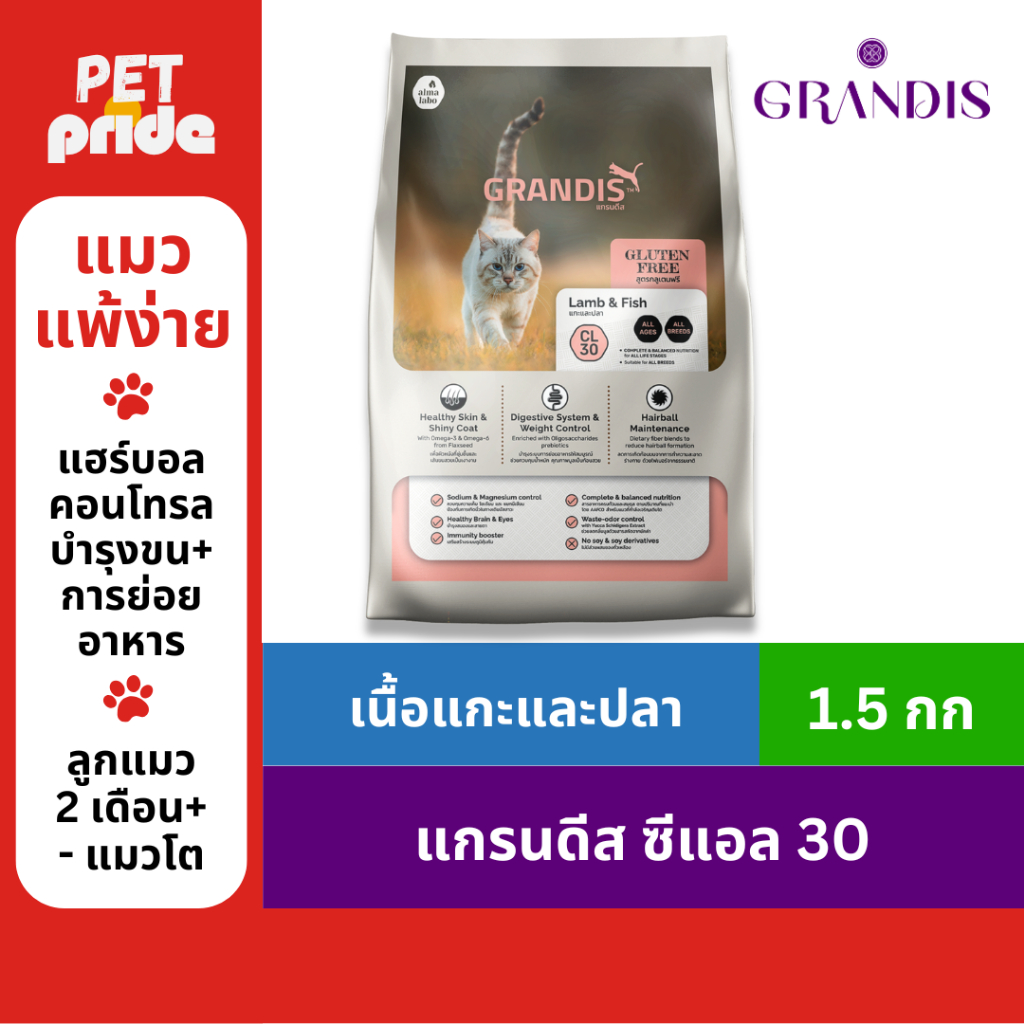 แกรนดีส CL30 (1.5กก) อาหารแมวเกรดพรีเมี่ยม GRANDIS สูตรกลูเตนฟรี แกะและปลา