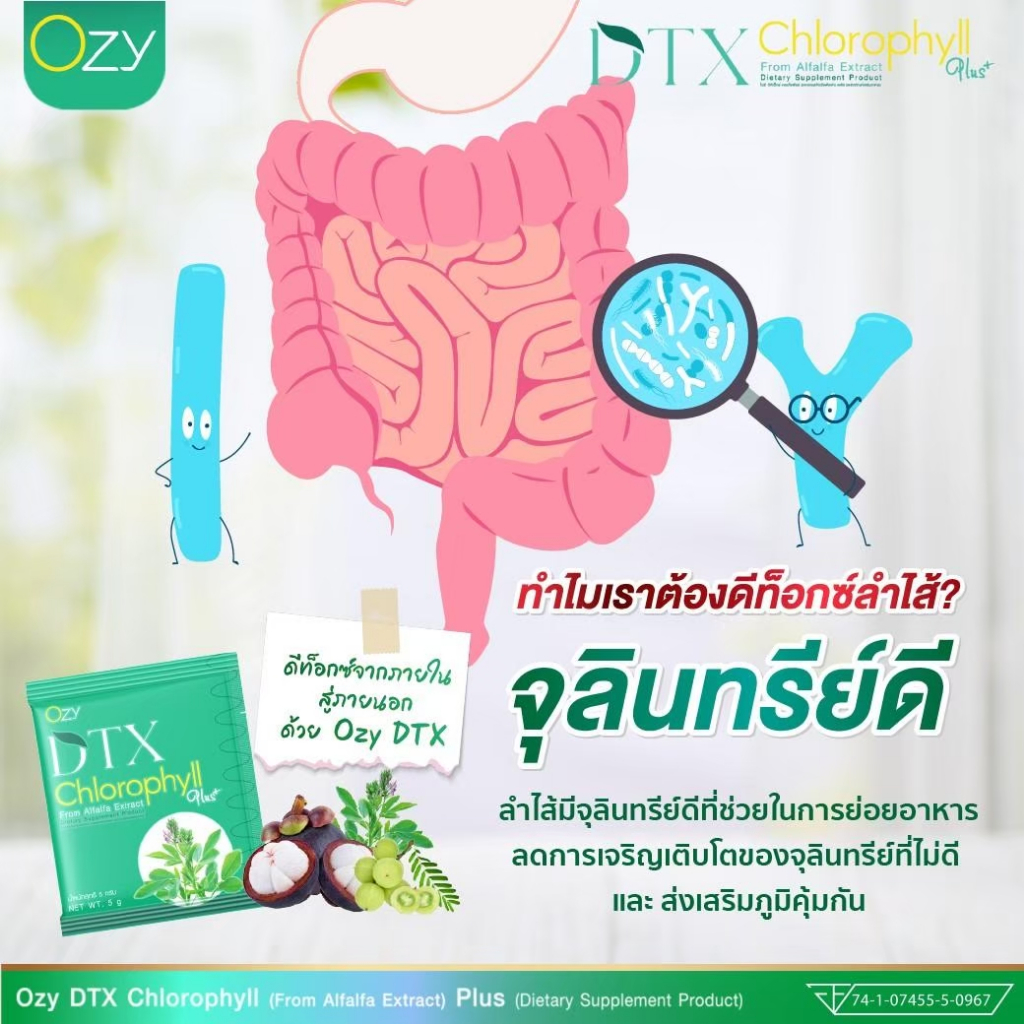คลอโรฟิลล์ DTX Chlorophyll Plus ฟรีกระบอกน้ำ 1500 ml DETOX ทั้ง 3 ระบบหลักของร่างกาย
