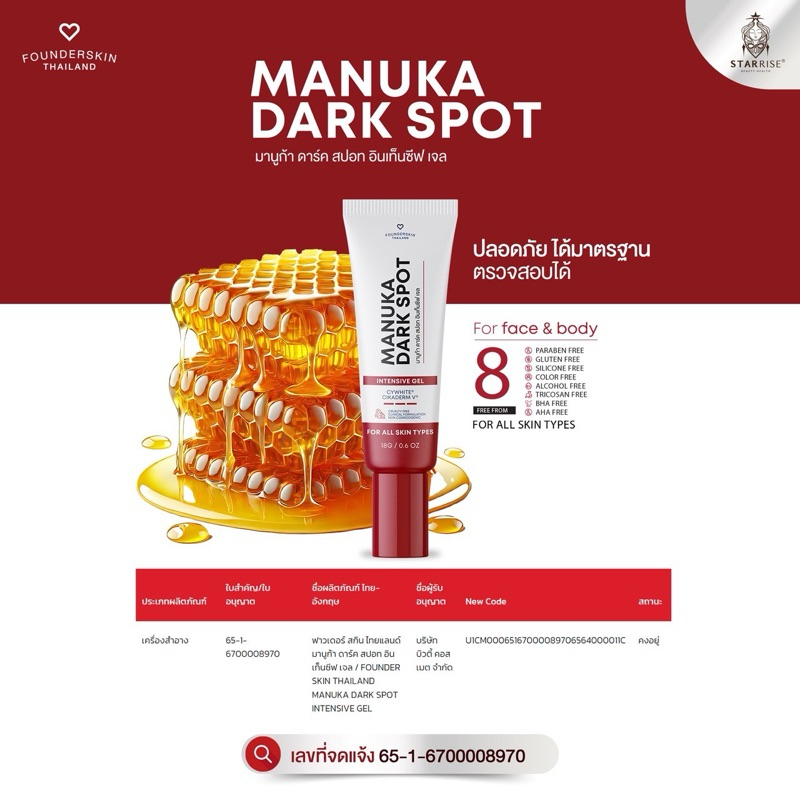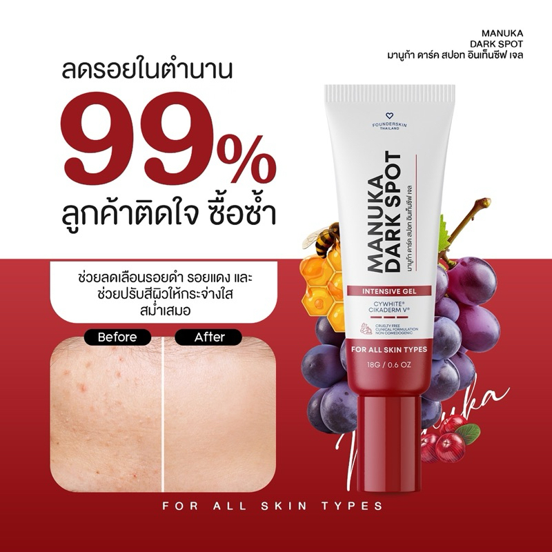 เจลลดรอยมานูก้าอัพ Manuka Dark Spot Intensive Gel เจลลดรอยสูตรใหม่ ลดรอยสิว ฟาวเดอร์สกิน