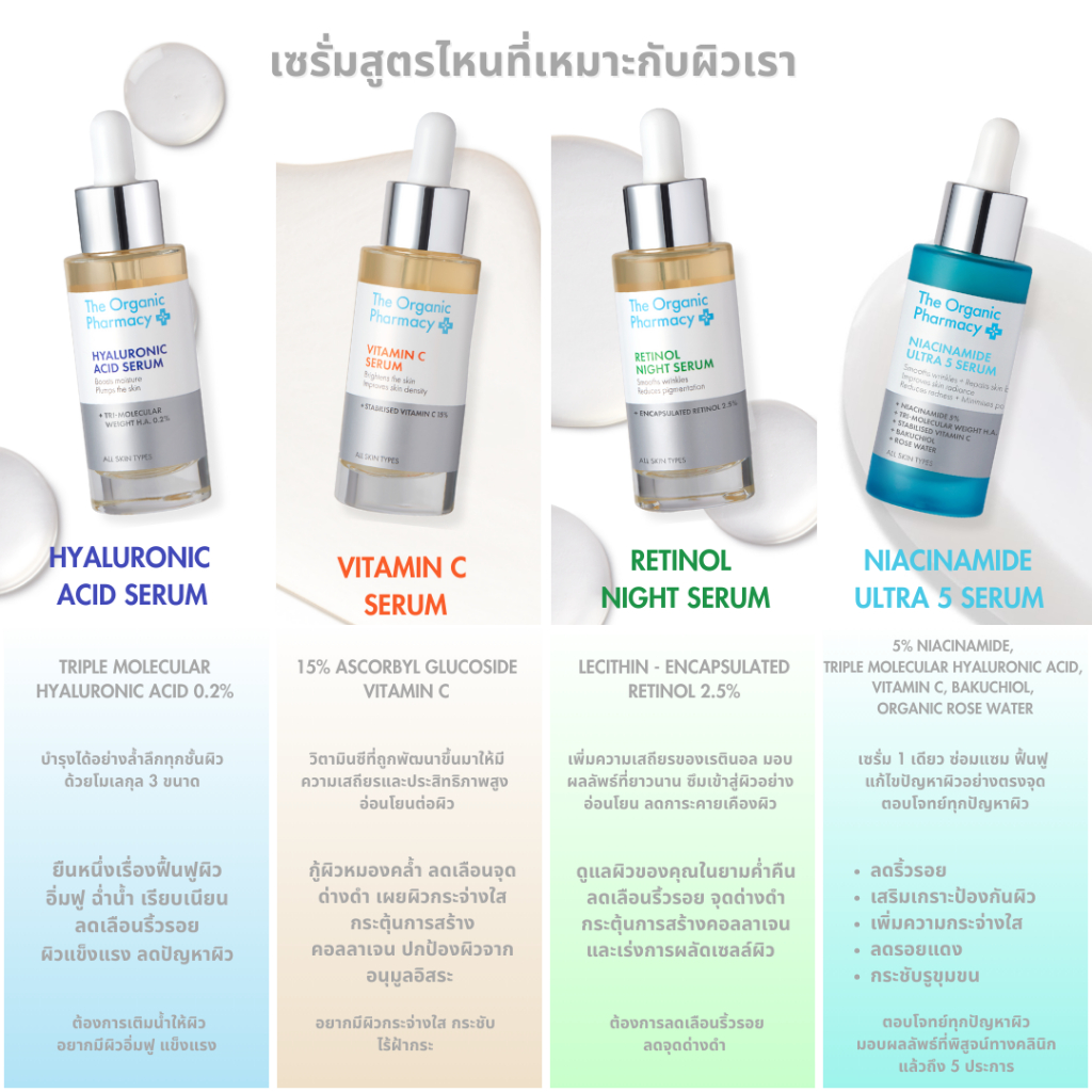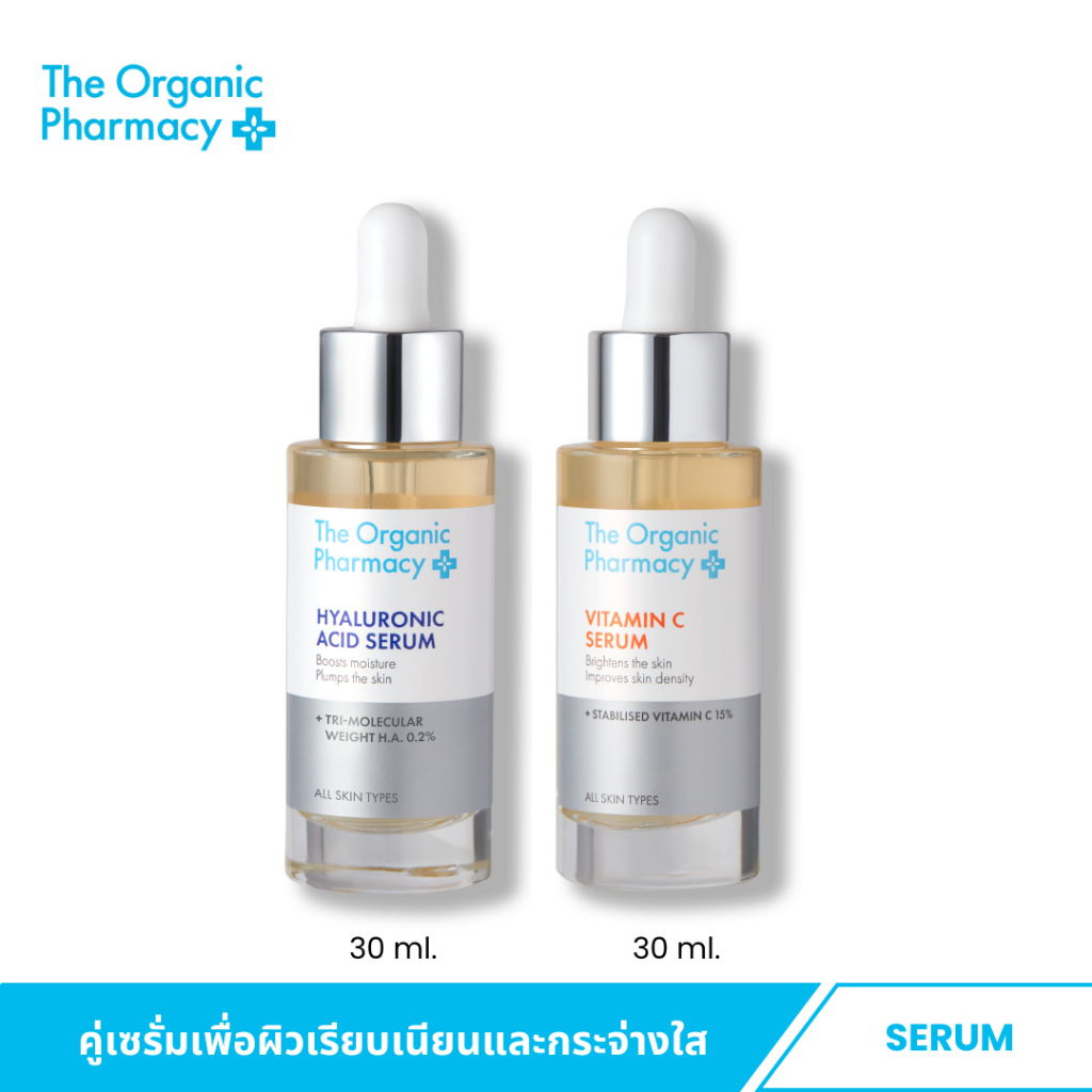 The Organic Pharmacy คู่เซรั่มเพื่อผิวชุ่มชื้น-กระจ่างใส Hyaluronic Acid &Vitamin C Serum 30mlx2