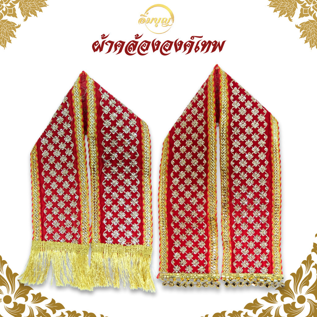 ผ้าคล้ององค์เทพ ผ้าถวายองค์เทพ พร้อมส่ง มีขนาดให้เลือกหลายขนาด สั่งตัดได้ค่ะ ปักเลื่อม ขลิบดิ้นทองีหลายแบบให้เลือก