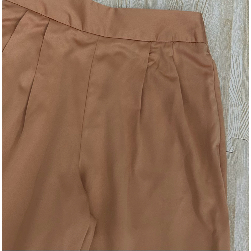 กางเกง GU ทรงสอบ ผ้าซาติน🍀S,M🍀สีส้มพาสเทล แบบสวม เอวหลังสม็อค มีซับใน