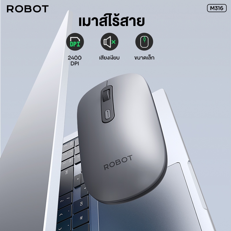 [ประกัน1ปี] ROBOT เมาส์ไร้เสียงคลิก เมาส์ไร้สาย เมาส์คอมพิวเตอร์ Wireless Mouse รูปทรงกระทัดรัด รุ่น M316