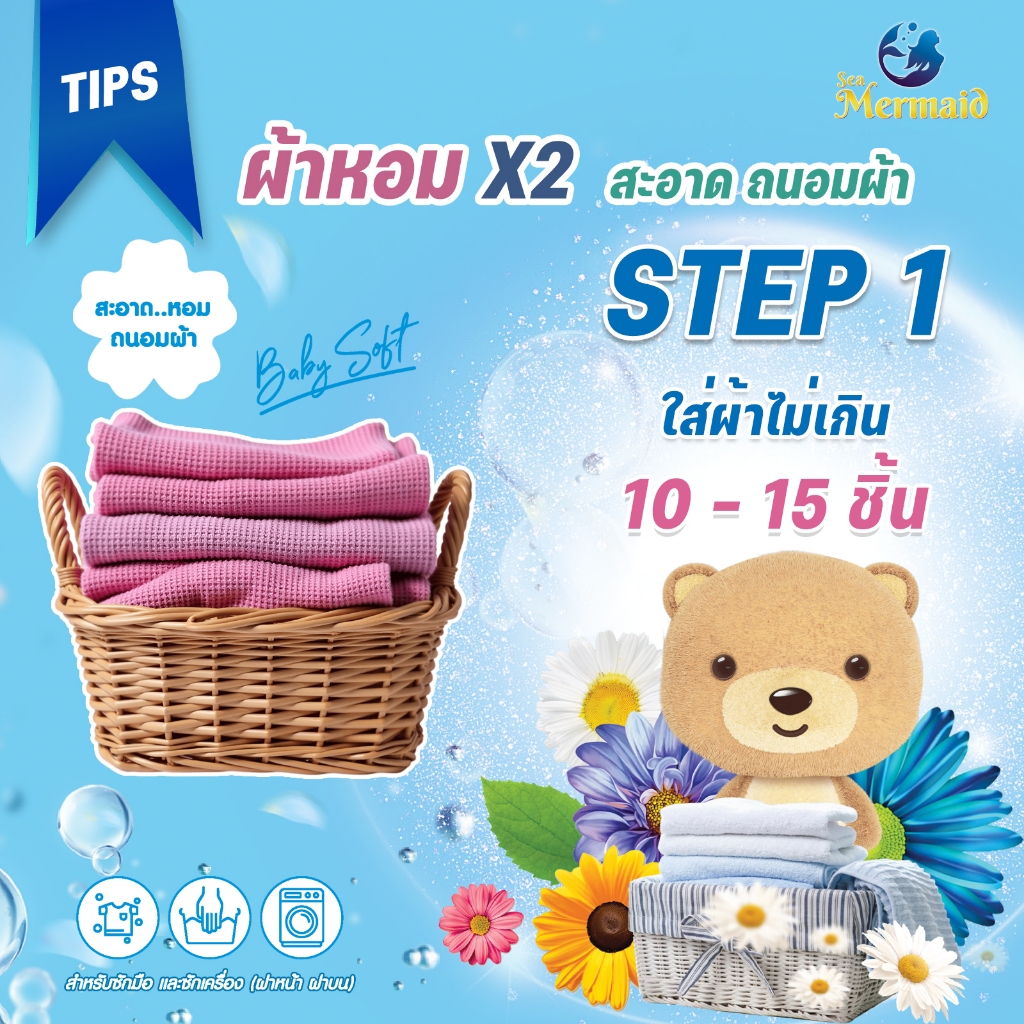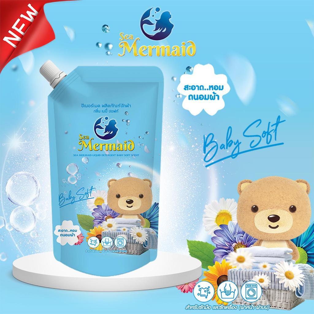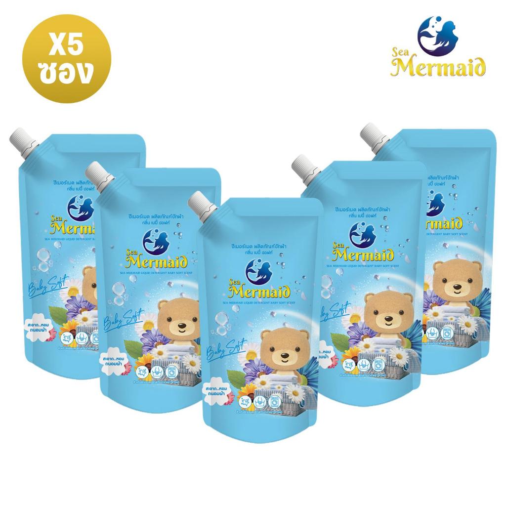 (ลดใหญ่ท้ายปี) Sea Mermaid น้ำยาซักผ้าซีเมอร์เมด 4000 มล.(800มล.x5ซอง)กลิ่น Baby Soft