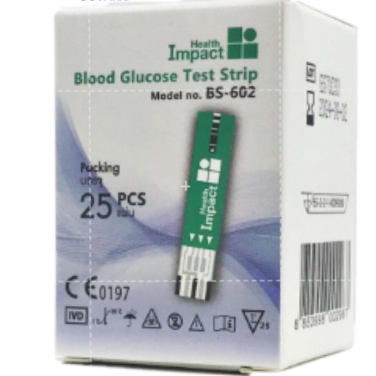 Health Impact Blood Glucose Test Strip (แผ่นทดสอบระดับน้ำตาลในเลือด) Model No.BS-602 (25 แผ่น)