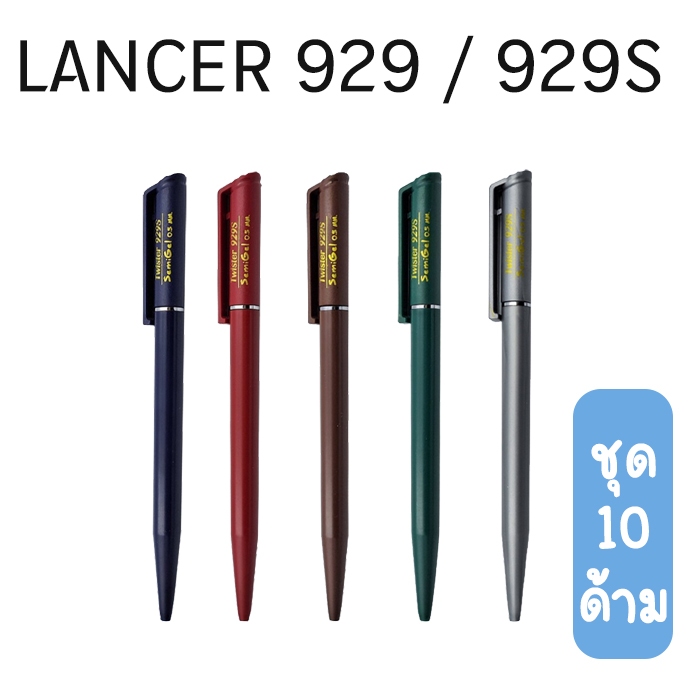 (แพ็ก10 ด้าม) Lancer ปากกาลูกลื่นหมุน แลนเซอร์ 0.5 มม รุ่น 929 / 929S
