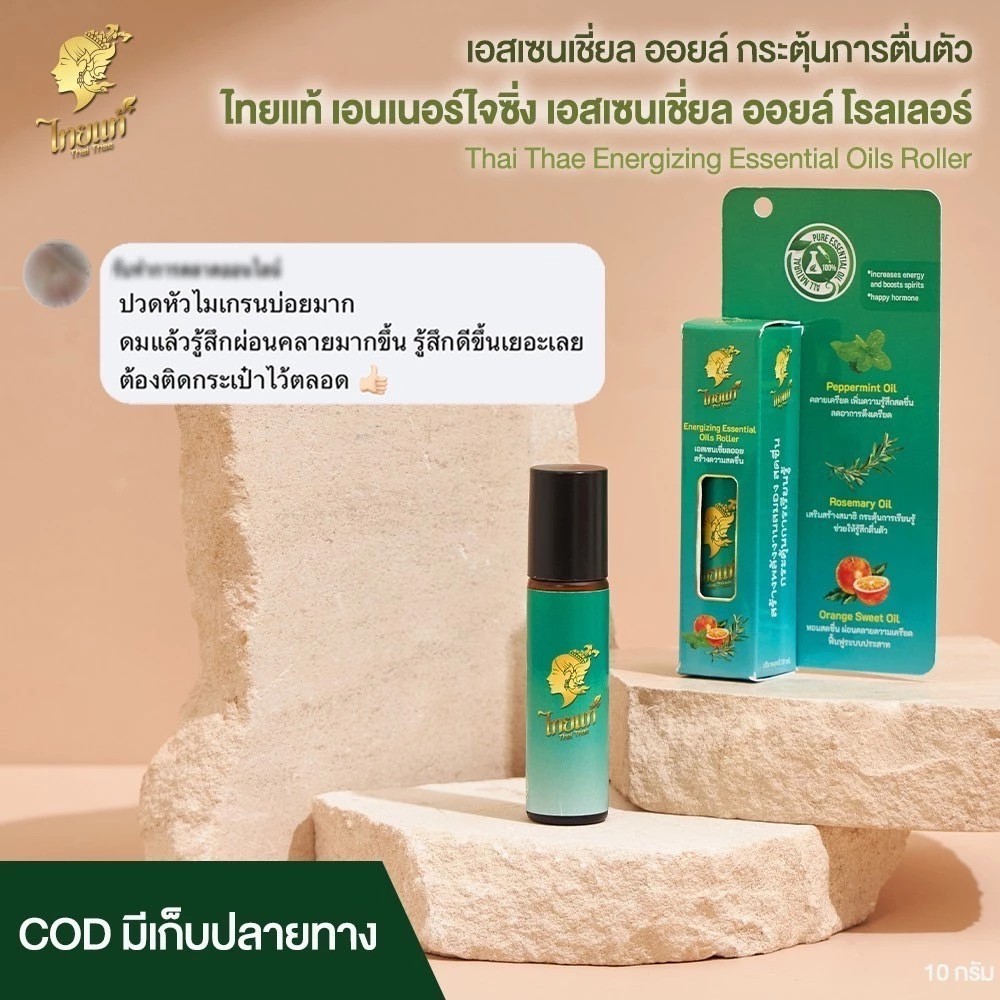 ยาดมน้ำมันหอมระเหย ลูกกลิ้ง คลายเครียด ไมเกรน Thai Thae Energizing essential oils roller 10ml