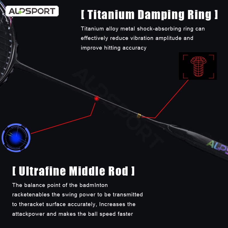 ALP BBQ2.0 8U G5 65g Super Light Original Design Damping แหวน 100% คาร์บอนไฟเบอร์ Professional ไม้แบดมินตัน Racquet Sport Reket สีดําสีชมพู Raket แบดมินตันสําหรับการฝึกอบรม
