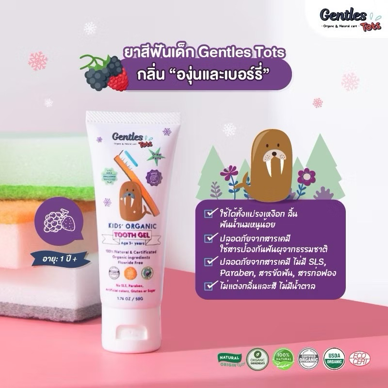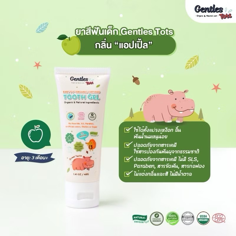 Gentle Tots ยาสีฟันเด็กออร์แกนิค ขนาด 40g ชนิดเจล ยาสีฟันกลืนได้ รุ่น 3m+ และ 1Y+