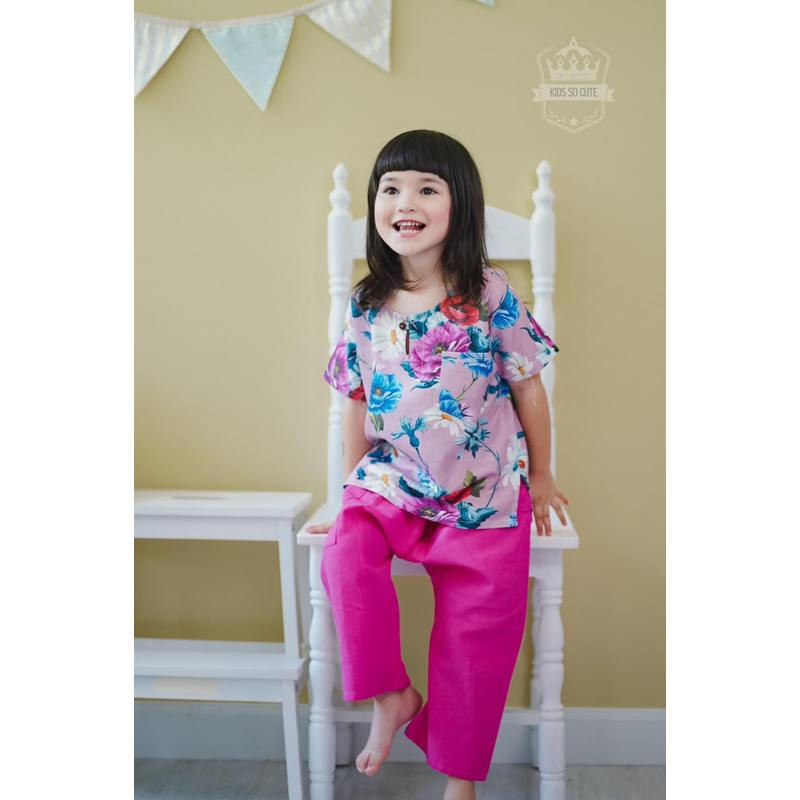 ชุดลำลองผ้าไทยดอกชมพูกางเกงชมพูA